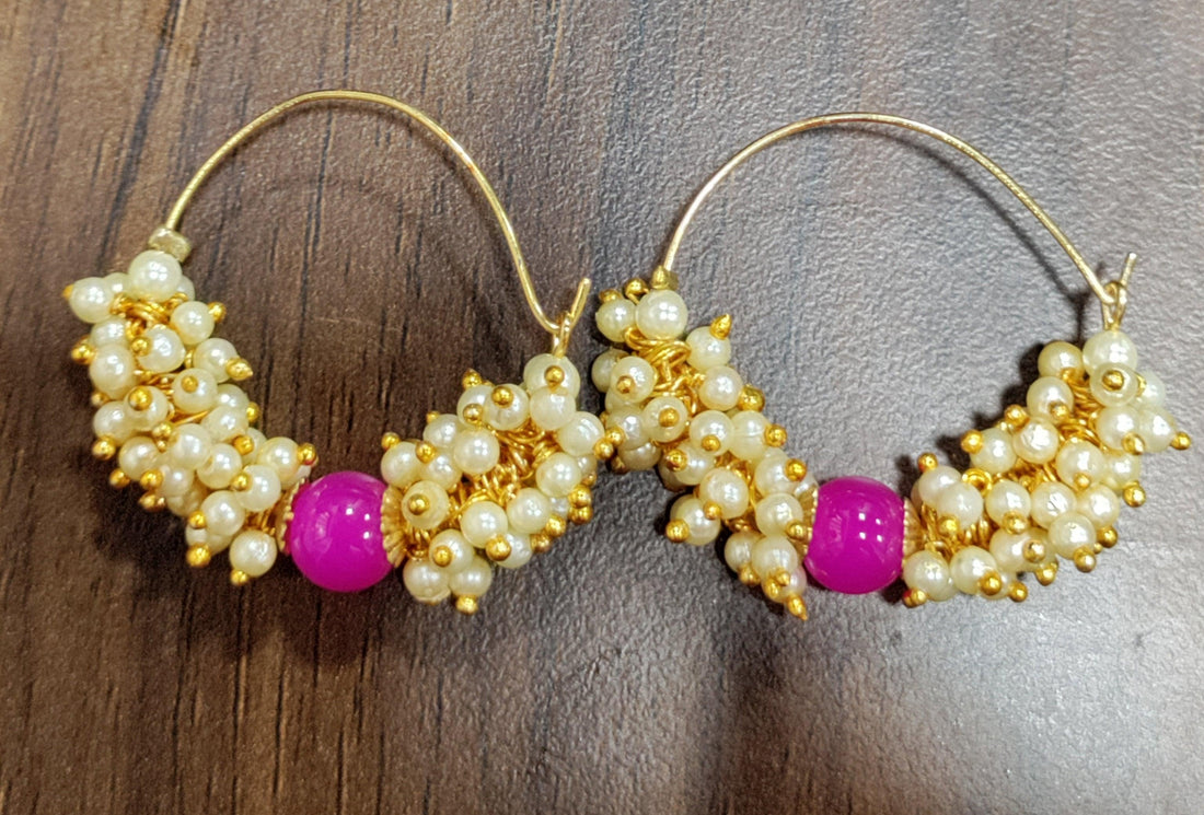 Bevy Pearls Golden Pearl Bali earrings for women and girls Metal Hoop Earring from Earring...