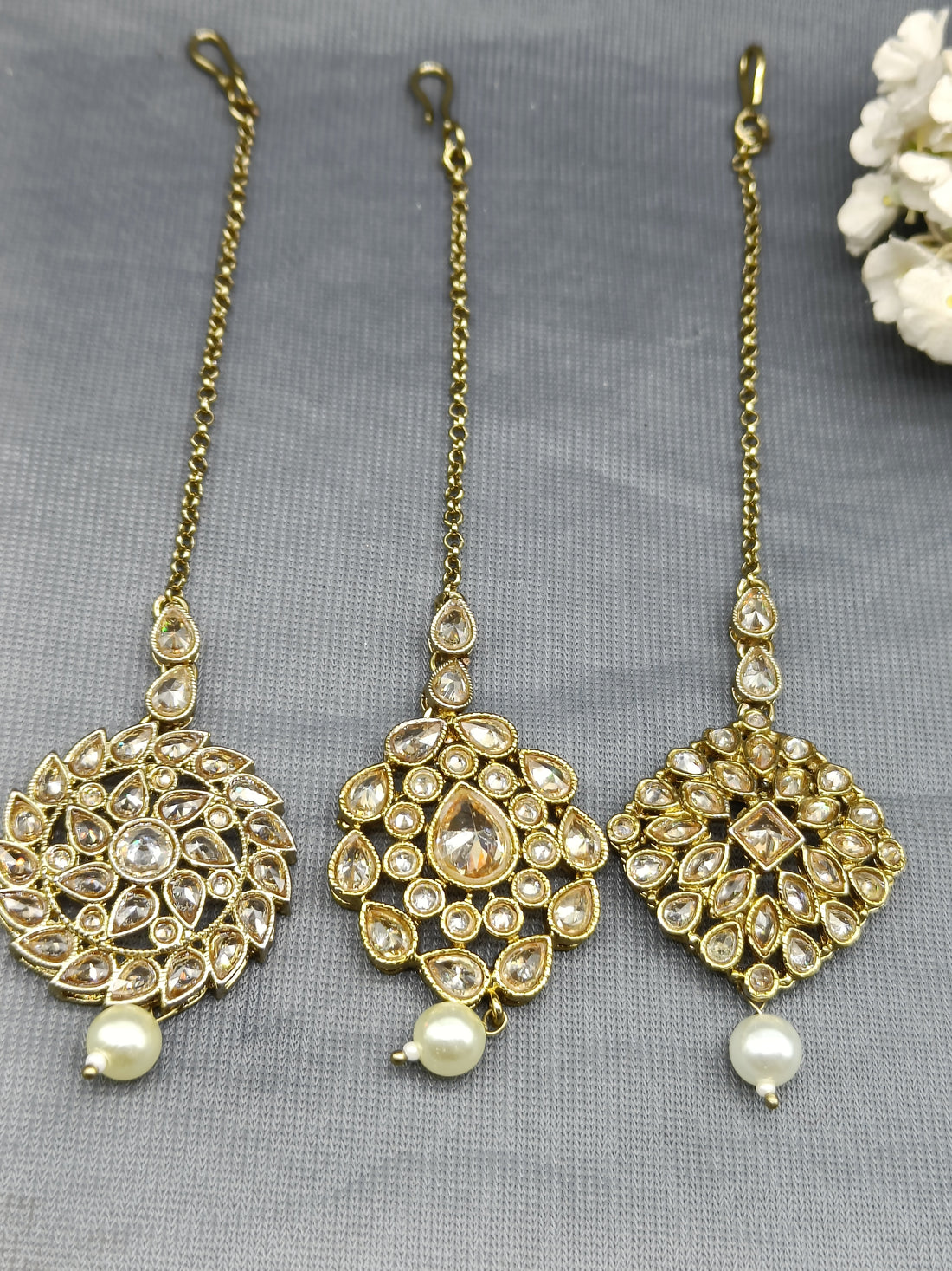 Polki jewellery in golden finish with Polki Kundan with beads stones to make these exquisite...