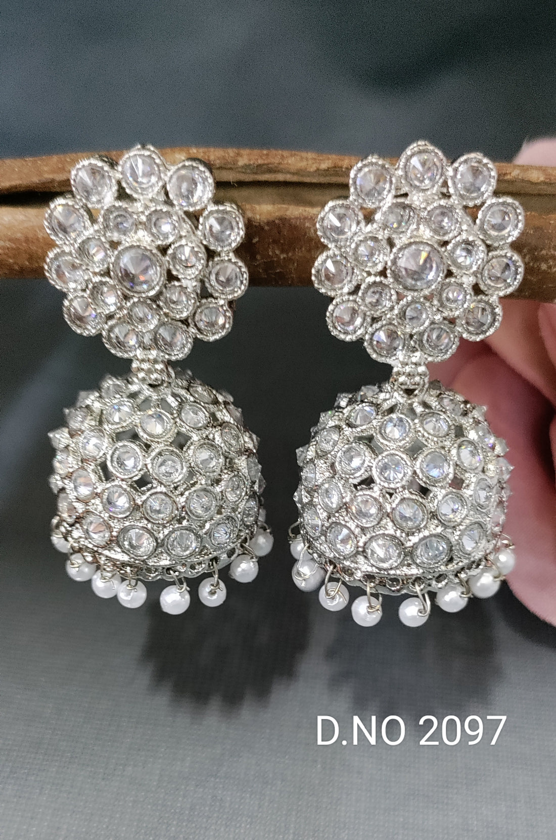 Polki Rodium Jhumki Earrings Sku 2097 A6