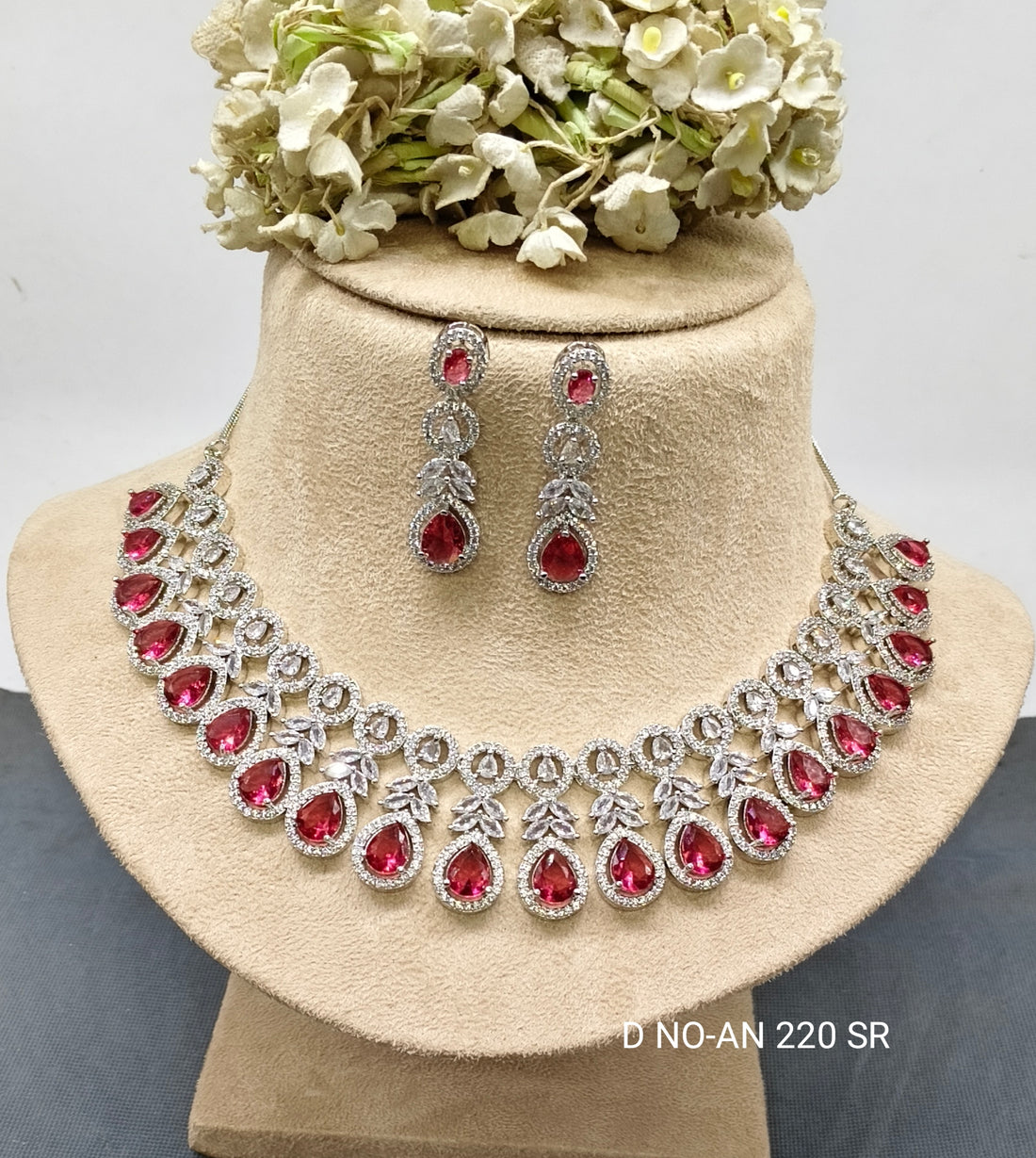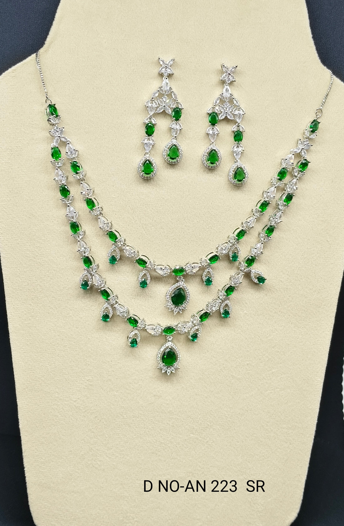 Elevate your ensemble with our exquisite Cz Ad Necklace Set (SKU-AN 232 SR). Meticulously crafted...