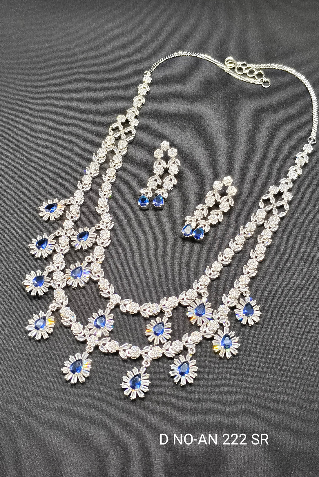 Cz Ad Rodium Necklace Set Sku AN 220 SR /C-7