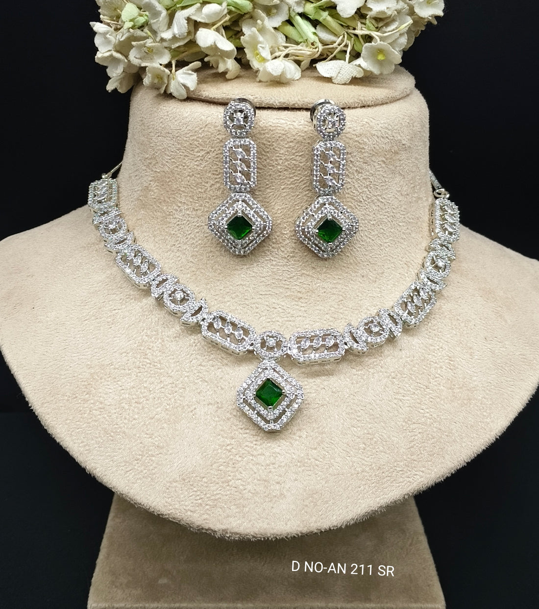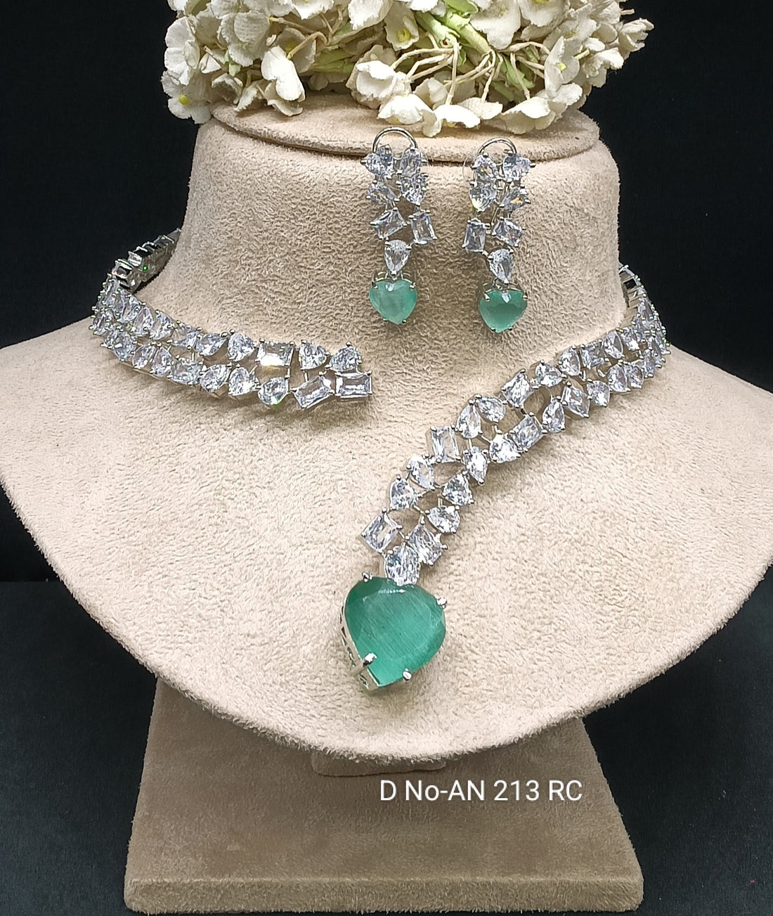 Cz Ad Rodium Neckalace Set SKU AN 211 SR C-3