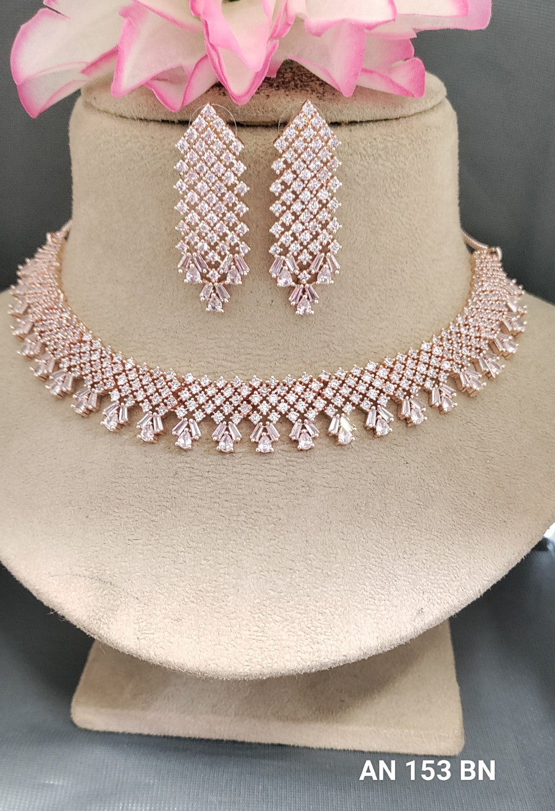 Cz Ad Rose Gold Necklace Set Sku AN 153 BN /C-6