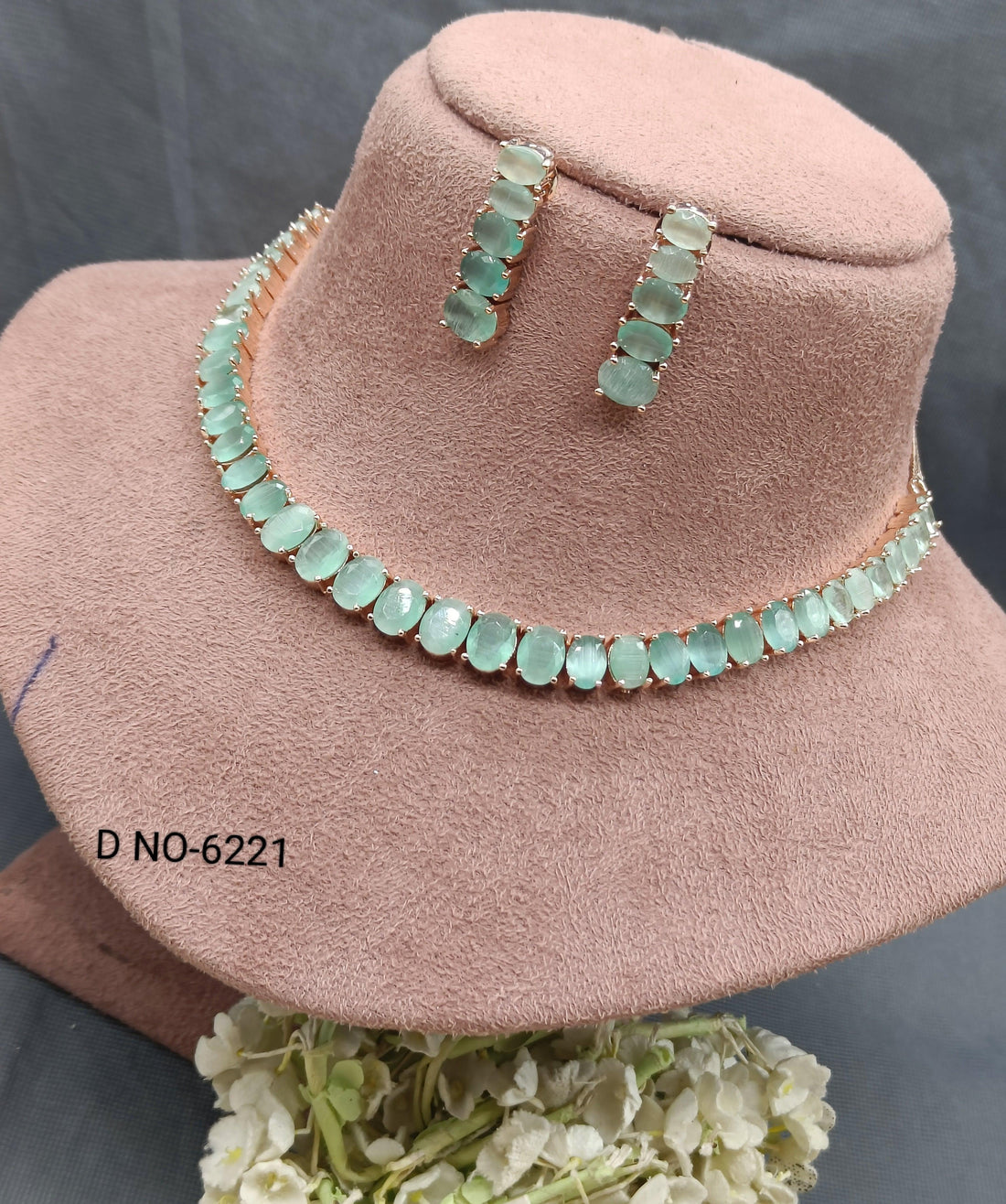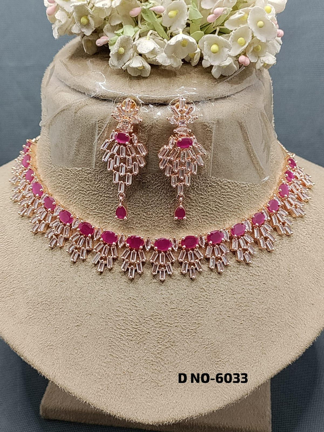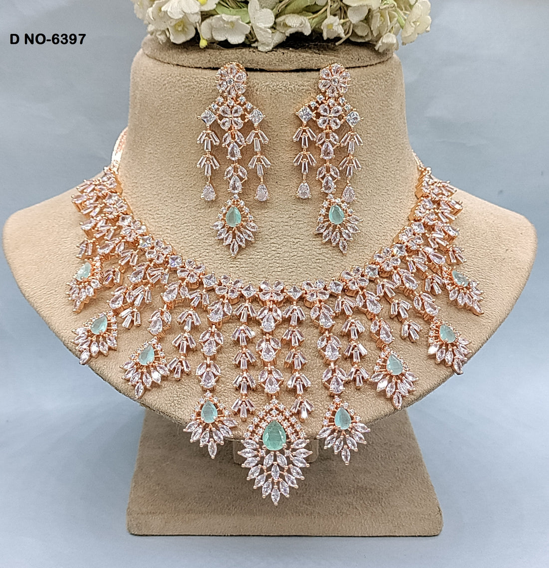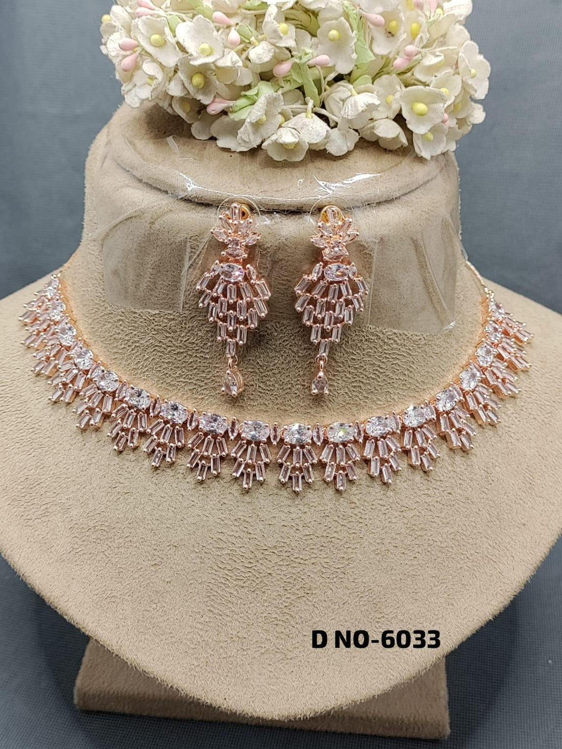 Cz Ad RoseGold Necklace Sku- 6383 C-6