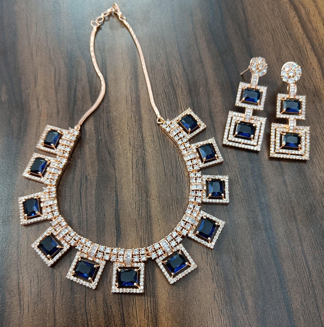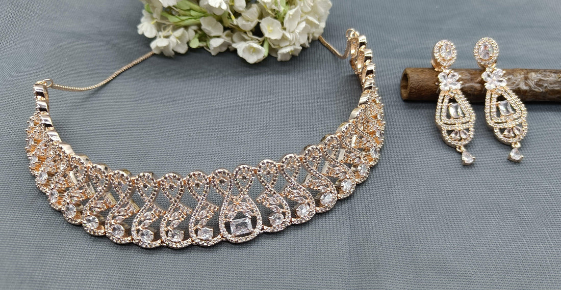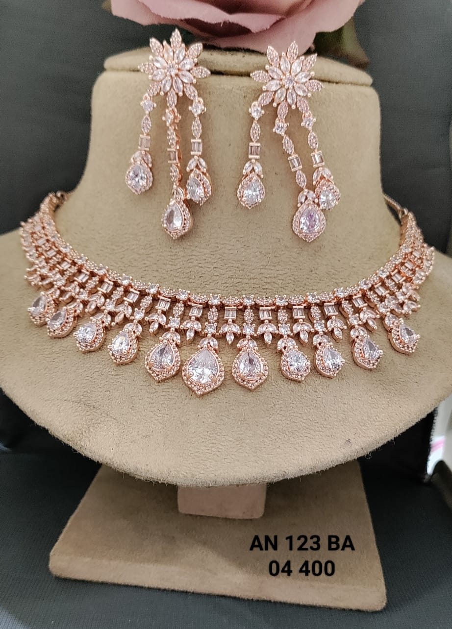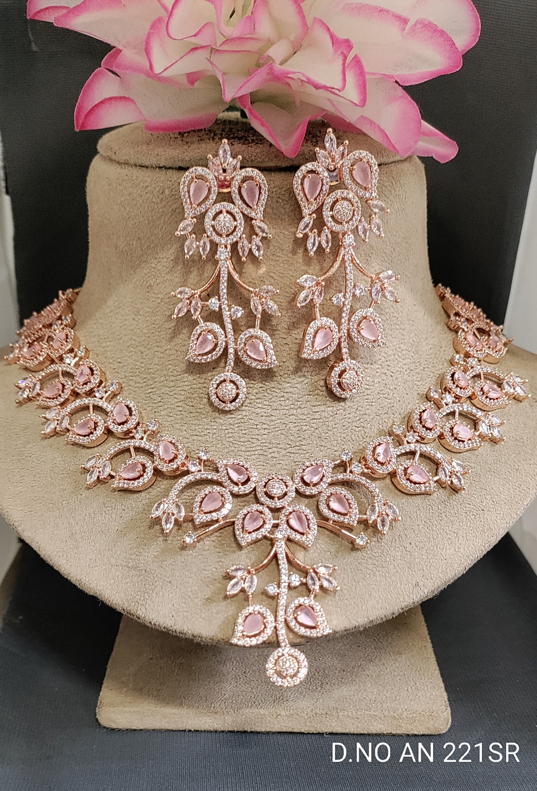 This Cz Ad Rose Gold Necklace Set Sku AN 153 BN adds a touch of...