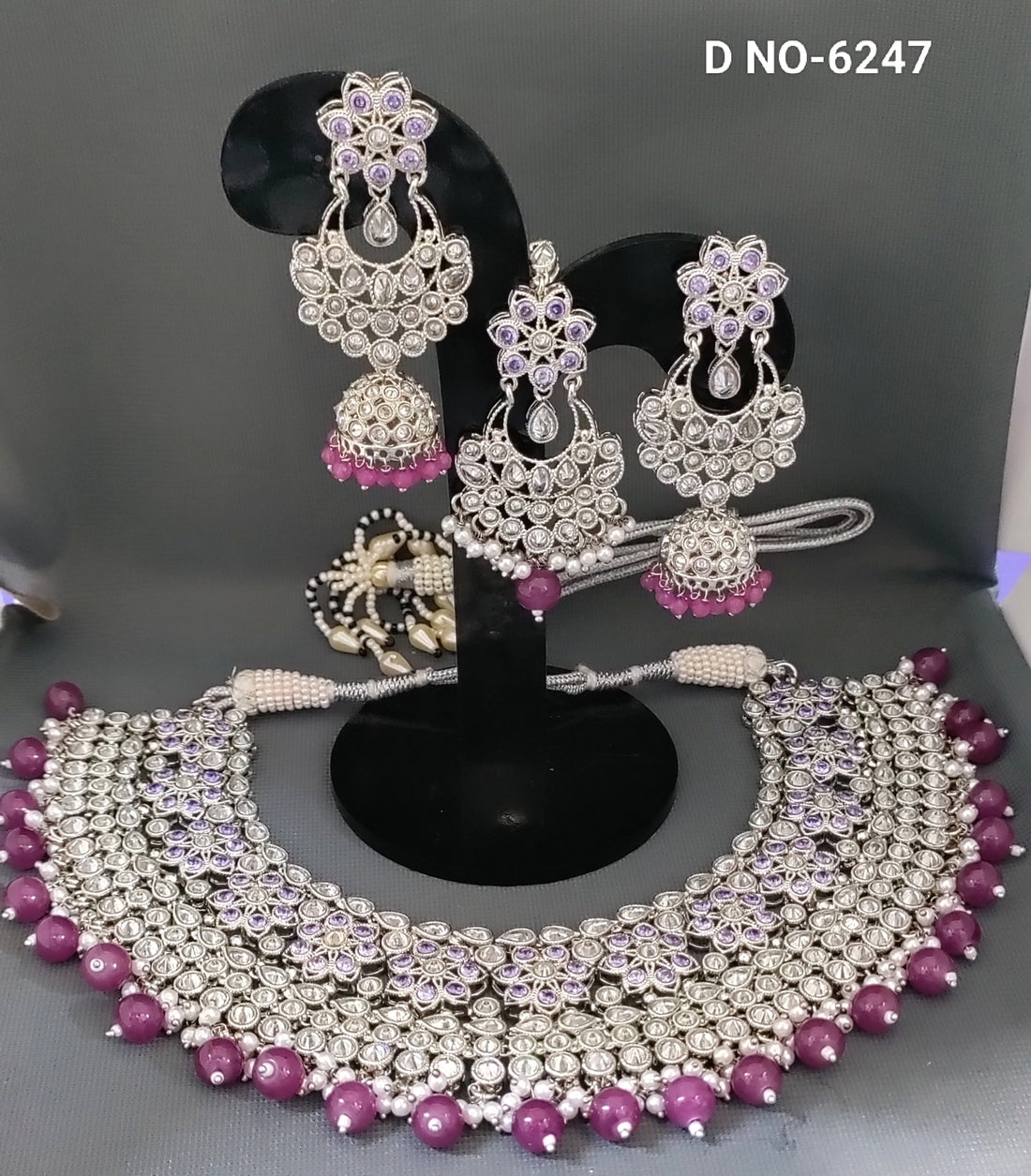 This Rodium Polki Necklace (Sku-6247) showcases refined craftsmanship with its durable rodium plating, ensuring lasting...