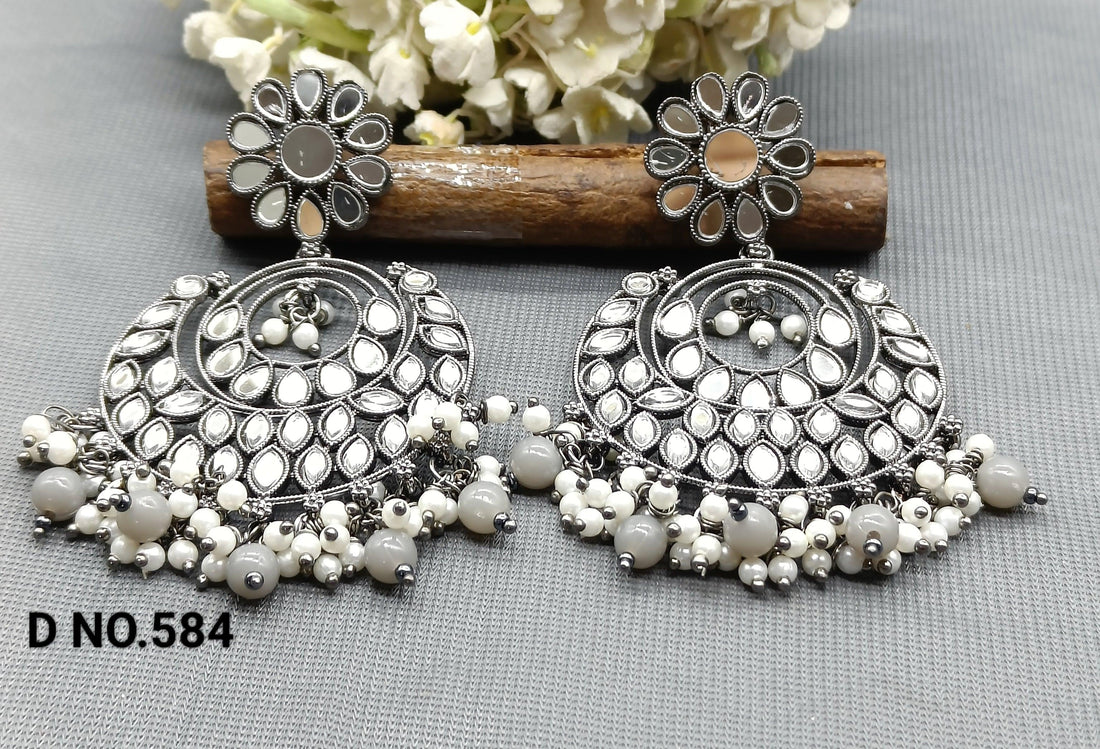 Kundan Mirror Earring Victorian Sku-584 E3. These stunning earrings are meticulously crafted with Kundan stones...
