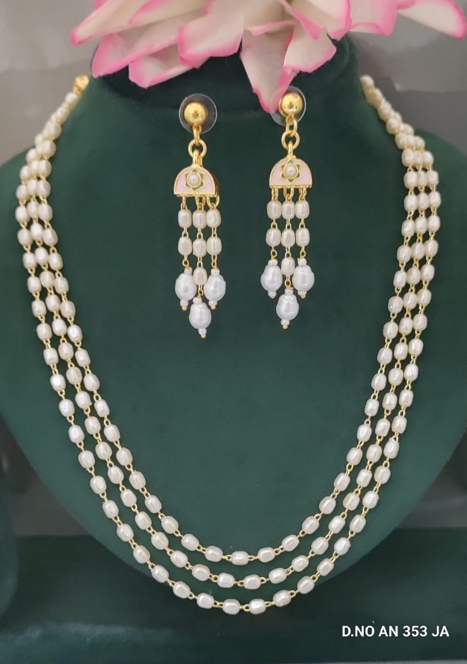 Golden Pearl Mala Necklace (SKU AN 353 JA) adds a touch of elegance to any ensemble. Made with high-quality materials, this necklace offers a classic and timeless style, perfect for any occasion.