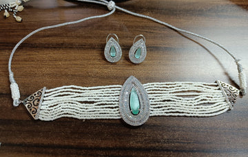 American diamonds necklace set (Sku 5521 C3) exudes elegance and sophistication. Dazzle at any occasion with the sparkling shine of these faux diamonds. Perfect for adding a touch of glamour to any outfit.