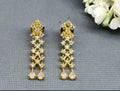 Cz Ad Golden polished Earrings feature stunning american diamond stone accents. Perfect for adding a touch of elegance to any outfit. Made with high-quality brass material.