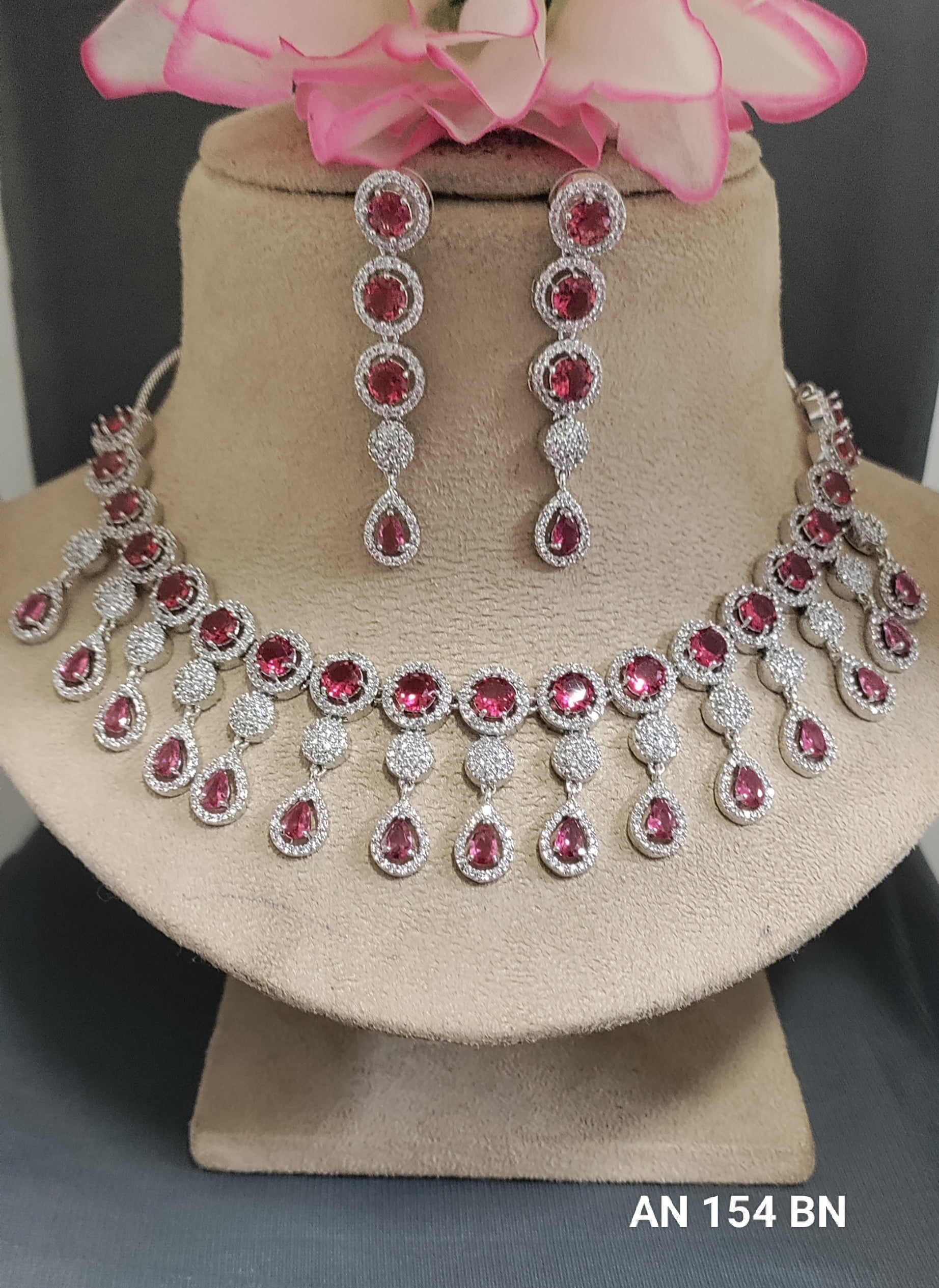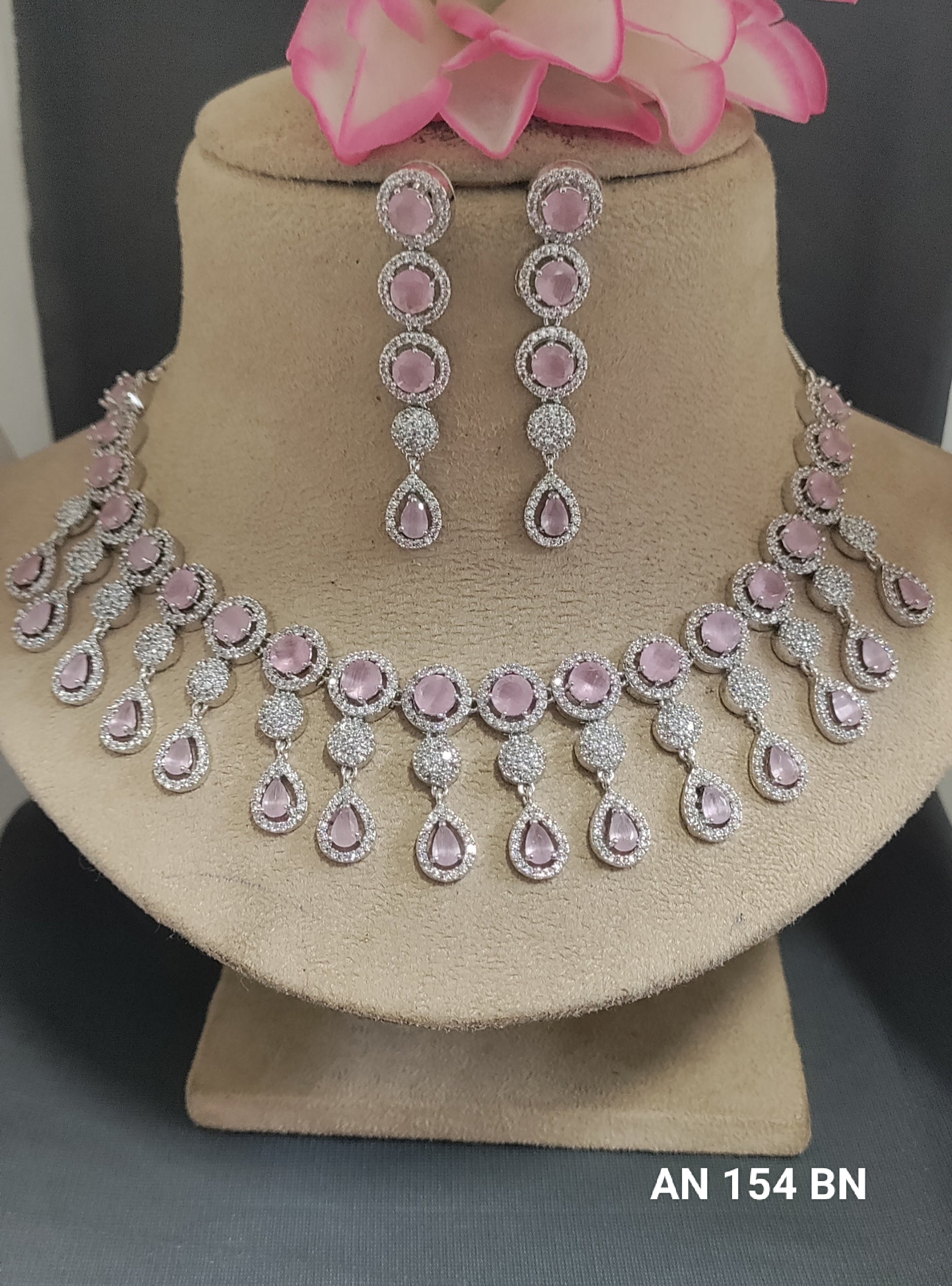 American Diamond Necklace Rodium SKU-AN 154 BN /C3