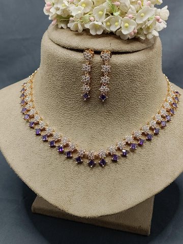 Party Wear Diamond Necklace Rosegold Sku 6059 C3