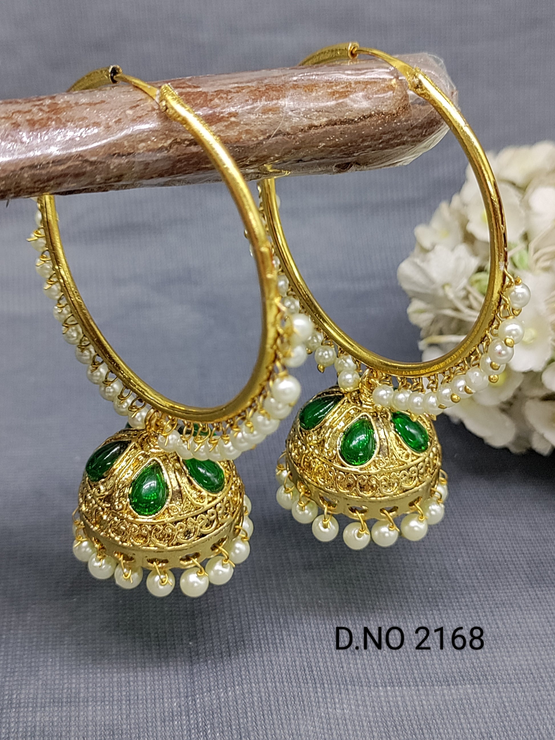 Antique Golden Bali Jhumki Earring Sku 2168 E1
