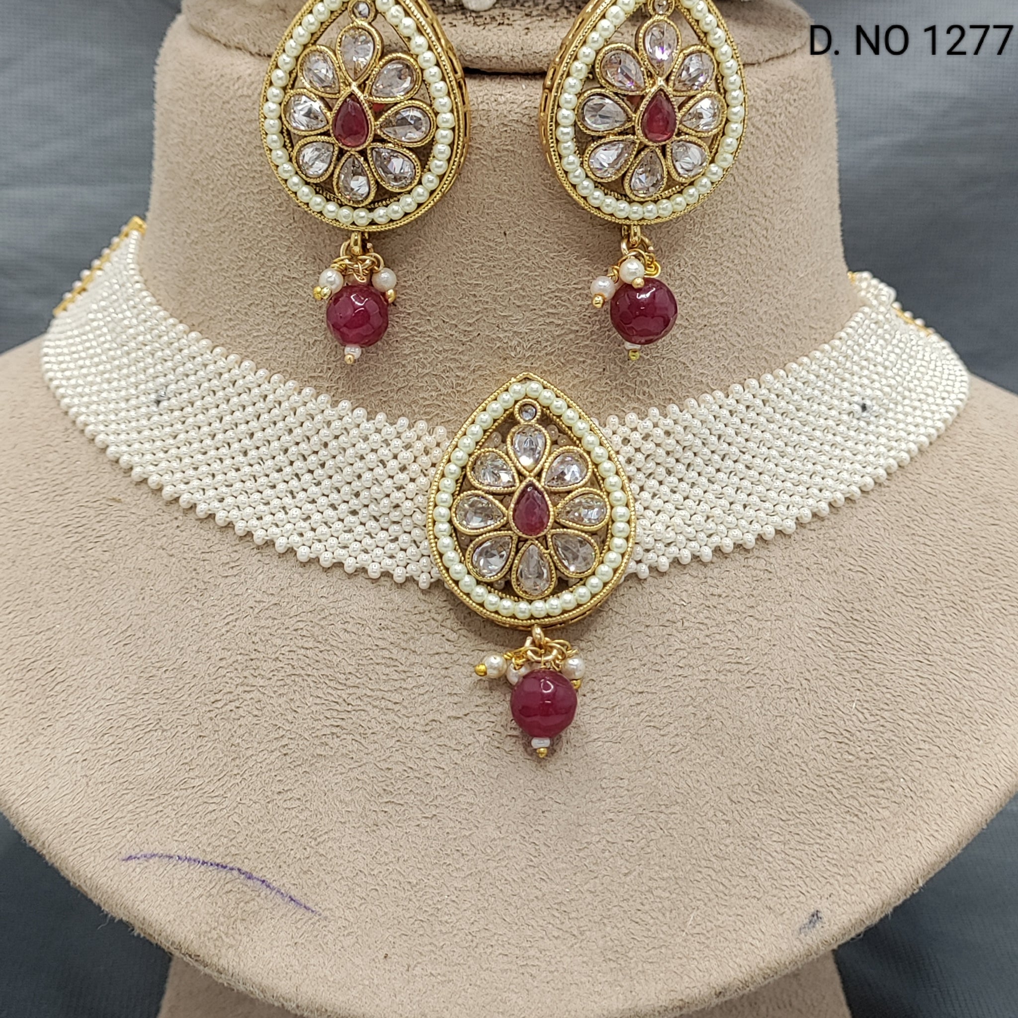 Antique Golden Choker Necklace Set Sku 1277 D-3