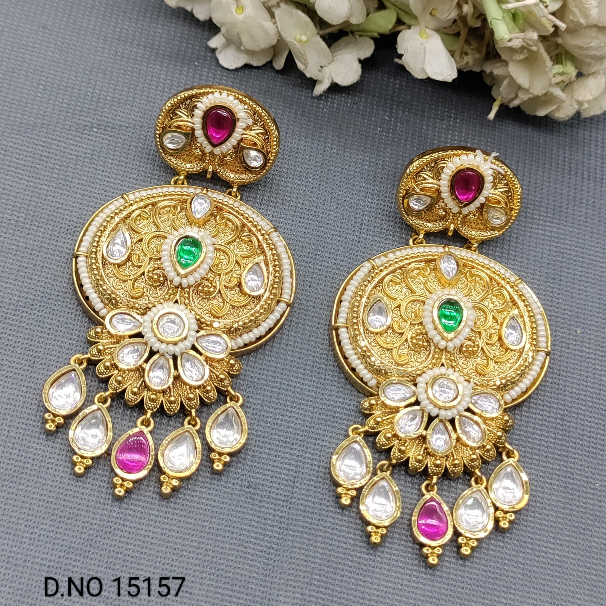 Antique Golden Earring. Made with intricate detailing and a timeless design, this piece will elevate any outfit. Crafted with high-quality materials, it boasts durability and style. Perfect for any occasion, these earrings are a must-have for any jewelry collection.