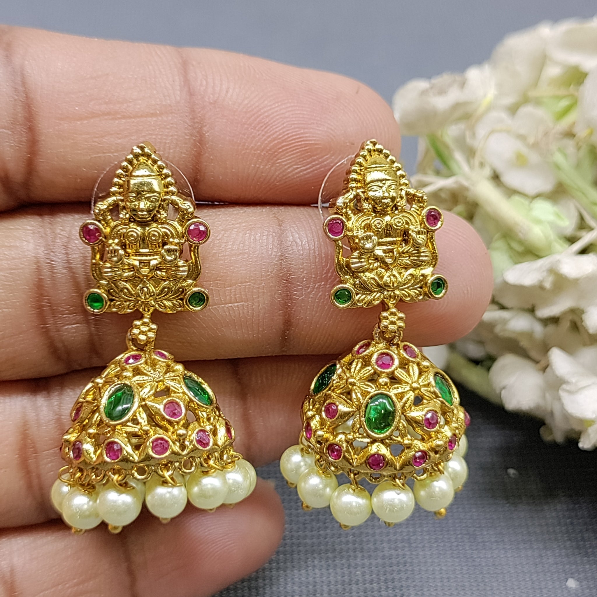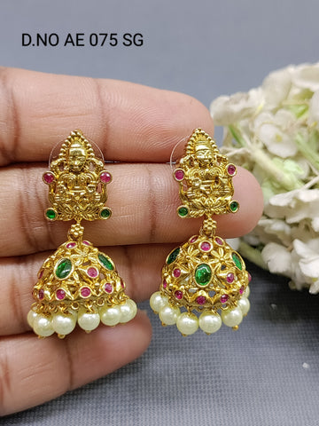 Antique Golden Kempo Jhumki Earring Sku AE 075 SG D3