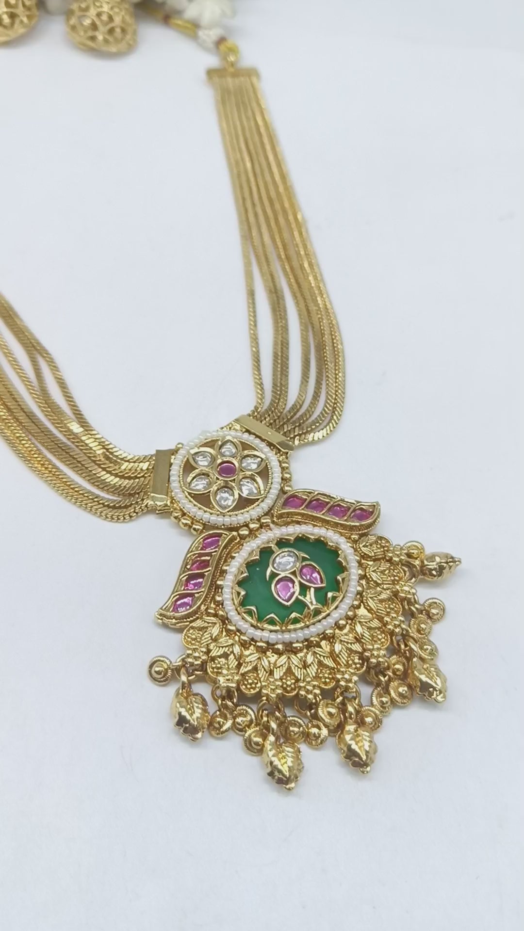 Antique Golden Kundan Necklace Set SKU KN 5110 SR
