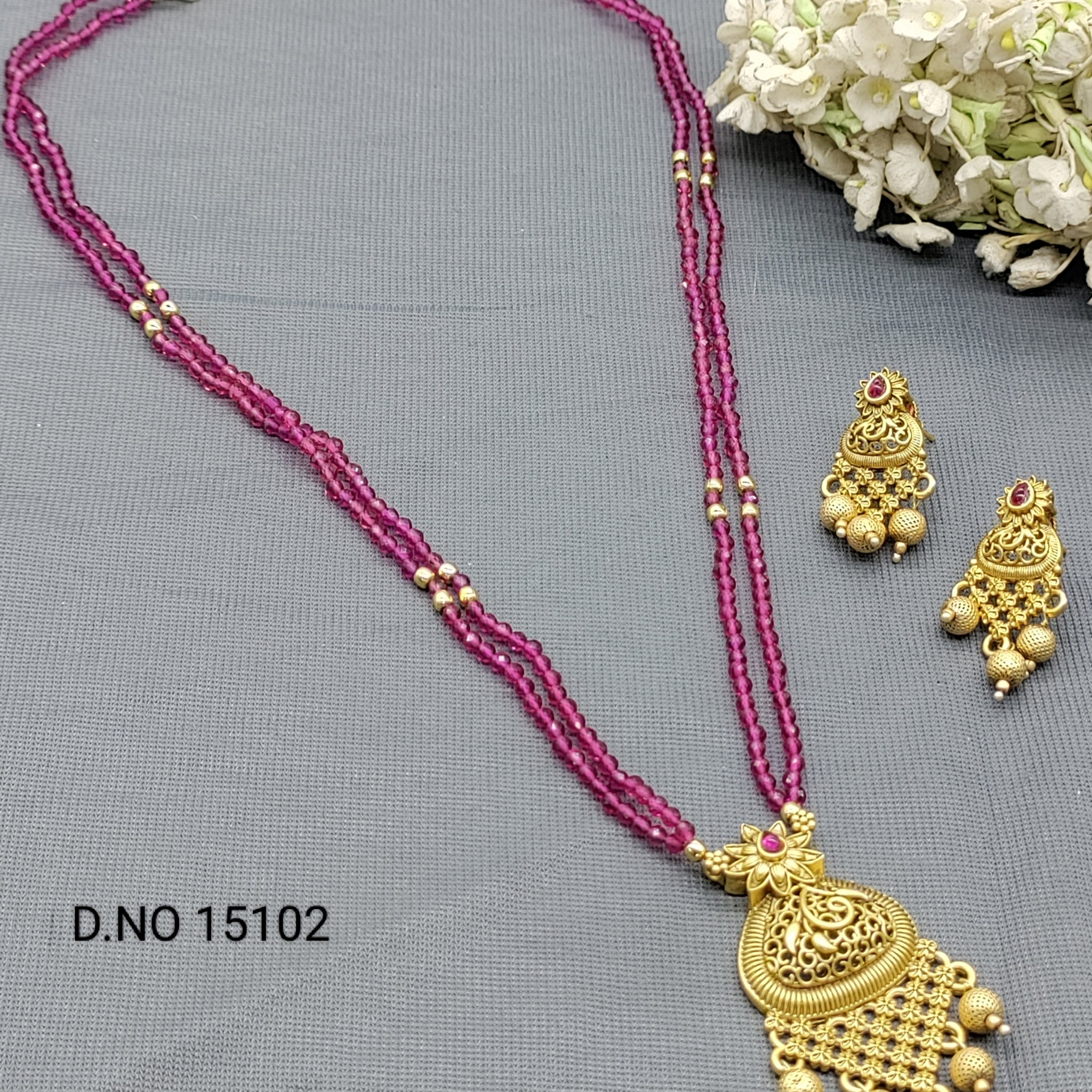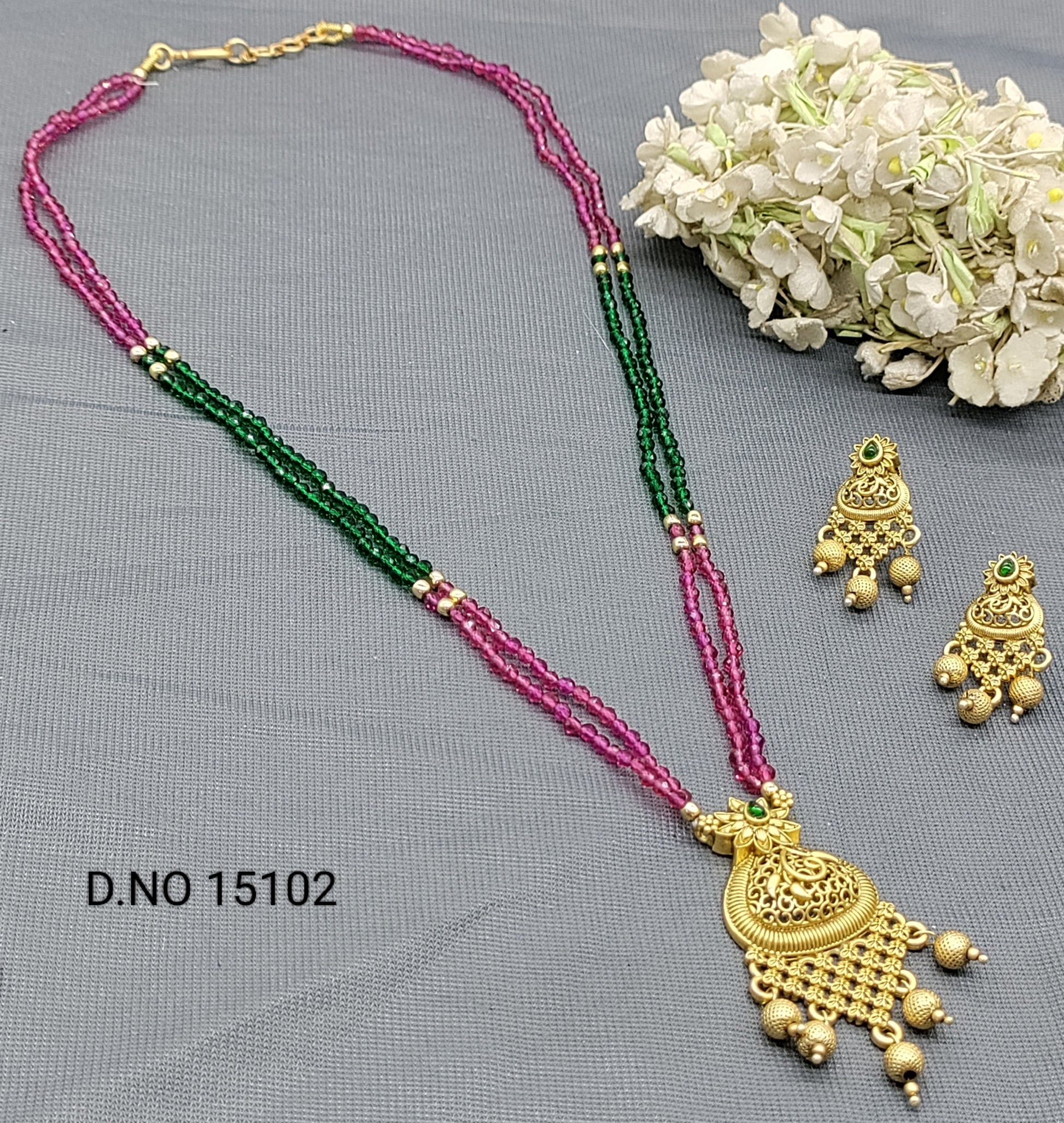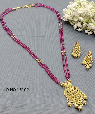 Antique Golden Long Necklace Mala Sku 15102 D4