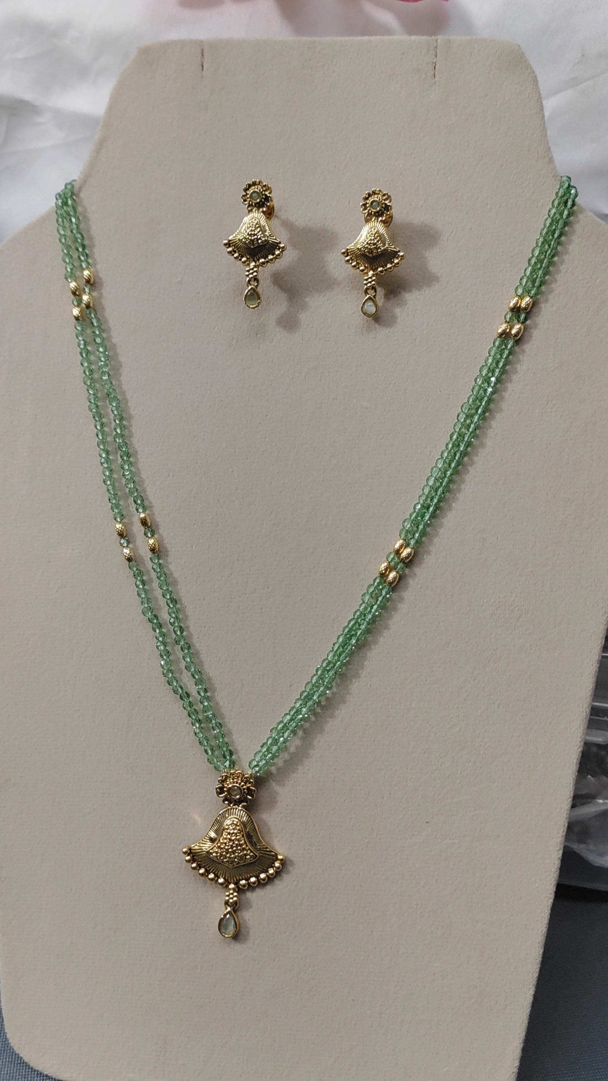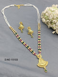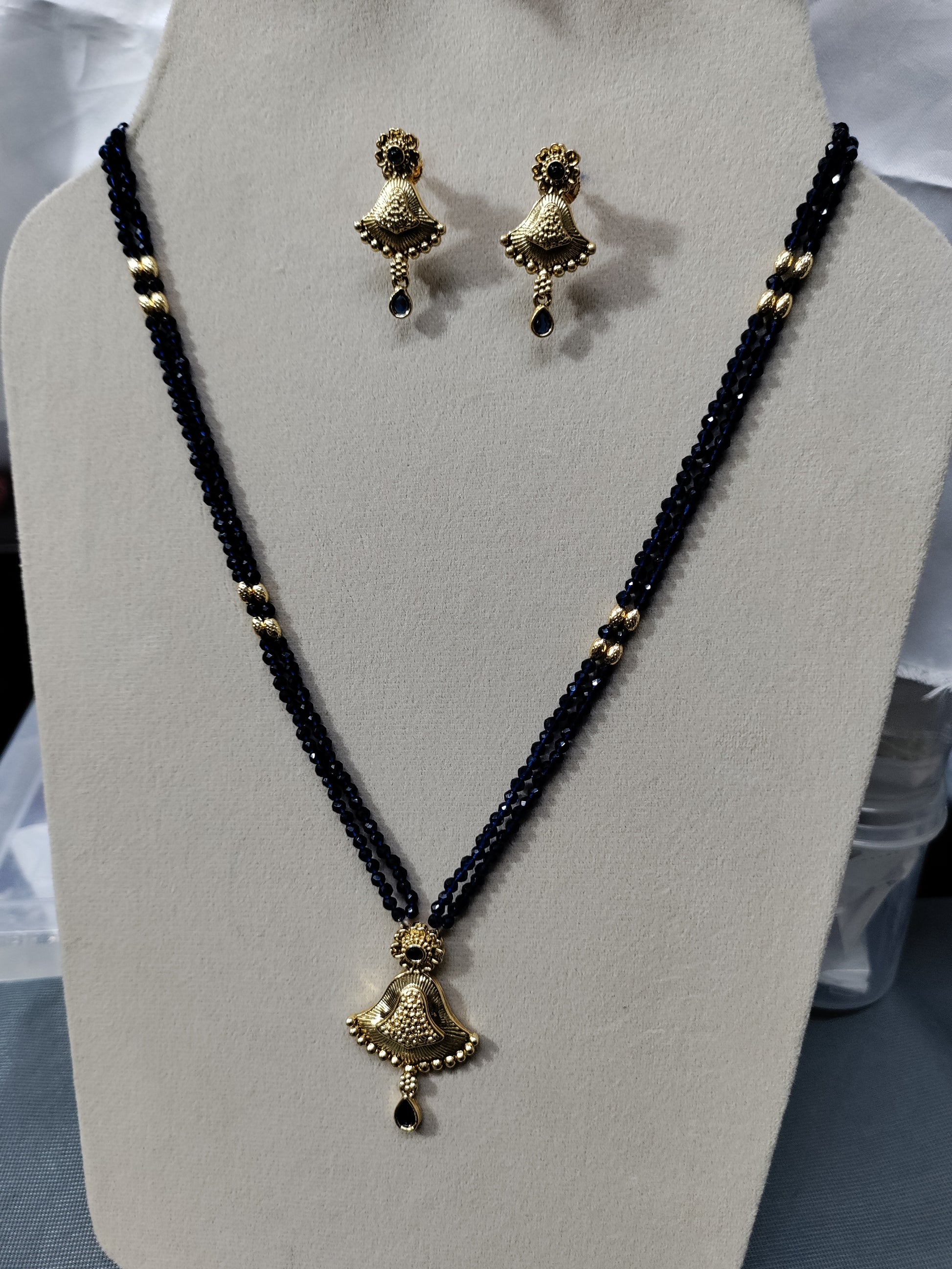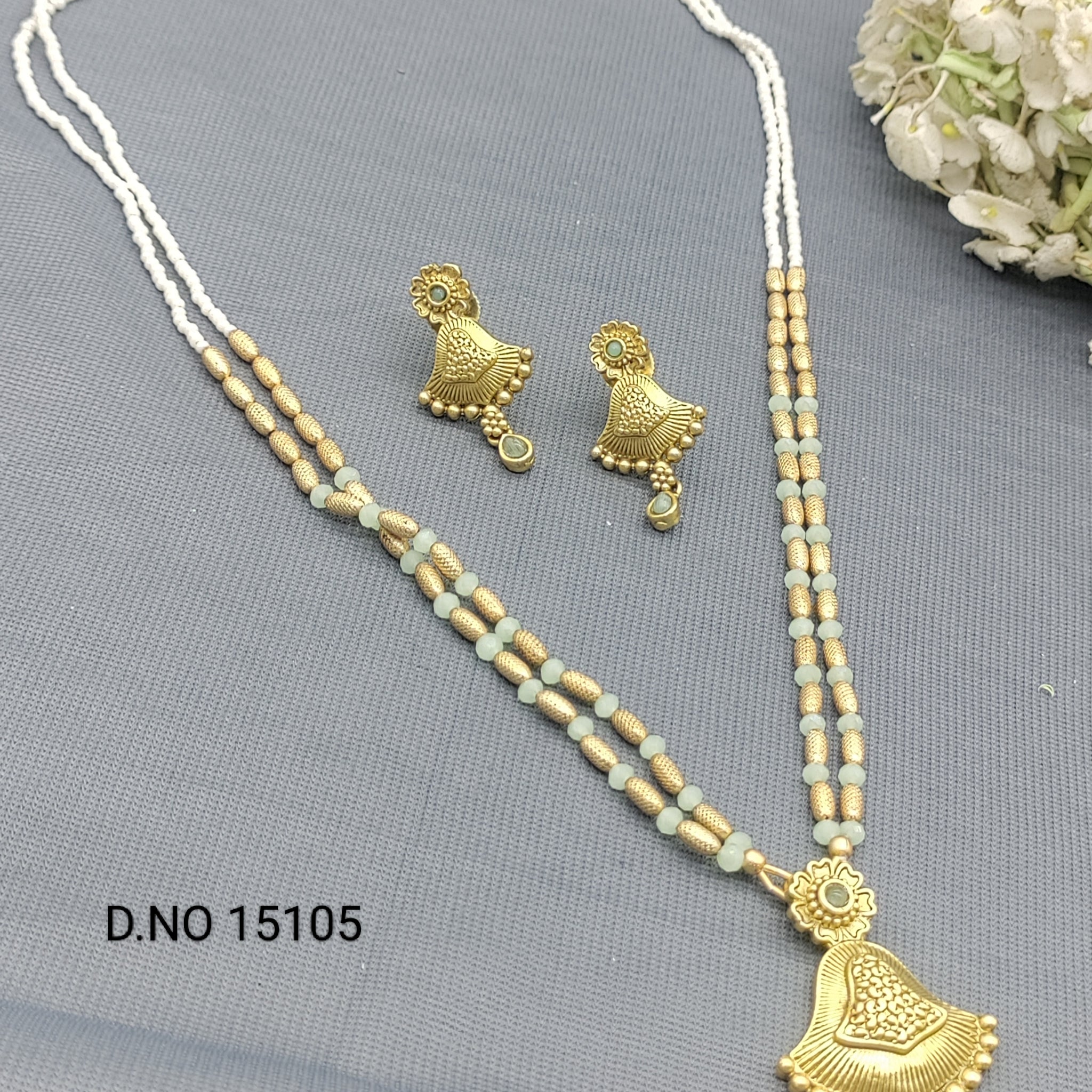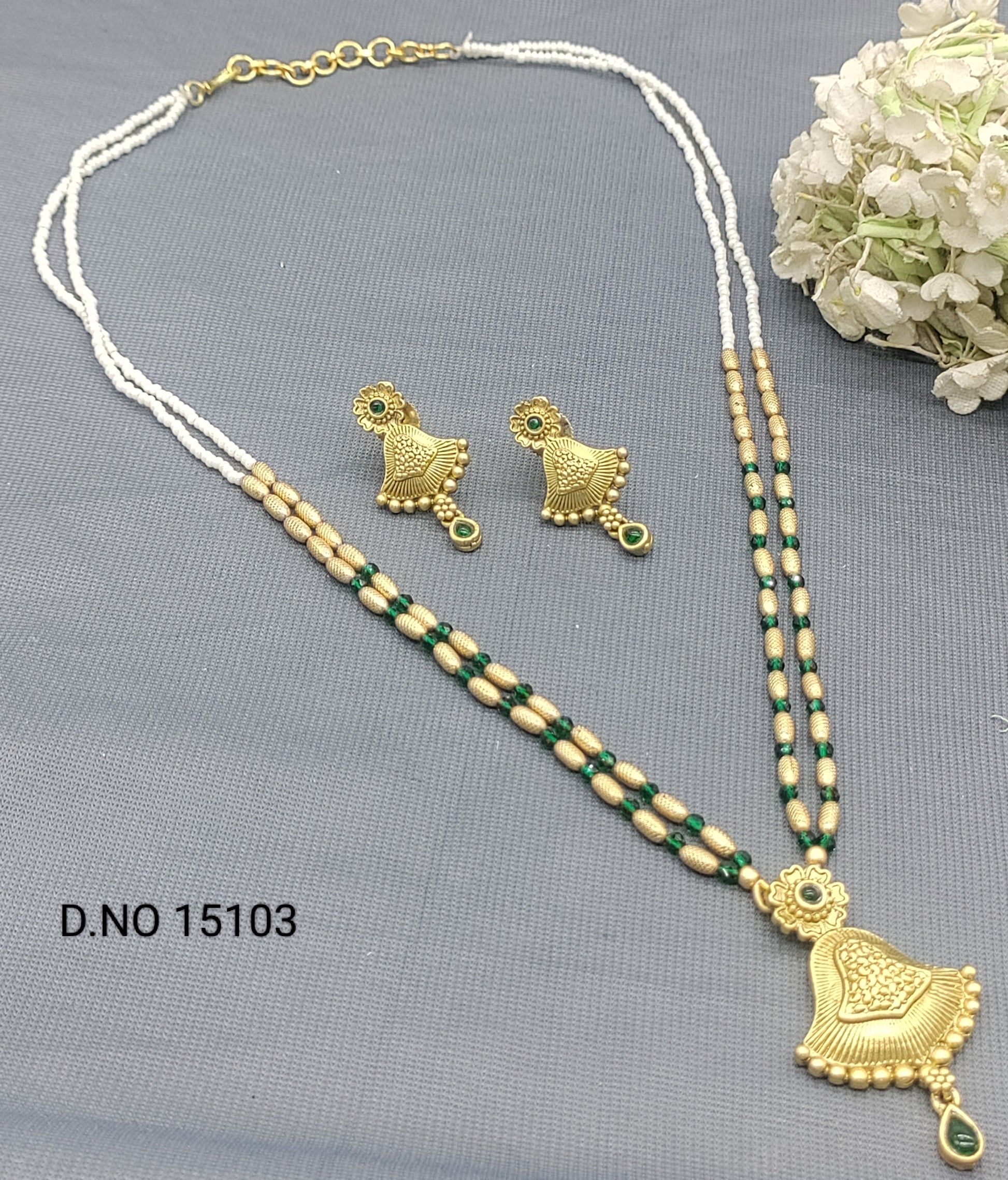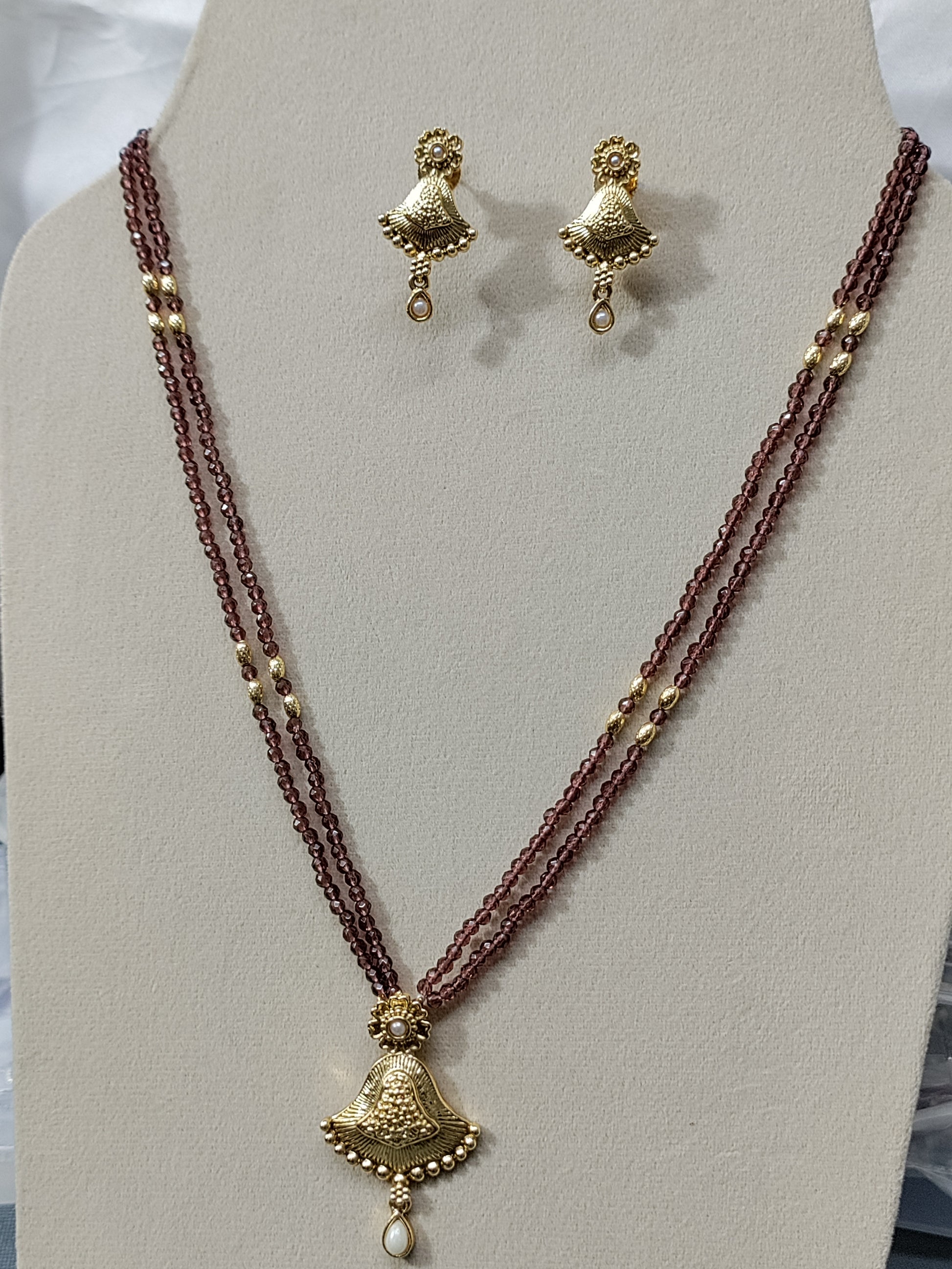 Antique Golden long Necklace Mala embodies timeless beauty and elegance. Crafted with intricate detailing and a vintage-inspired design, it adds a touch of sophistication to any outfit. Made with quality materials, Perfect for any occasion.