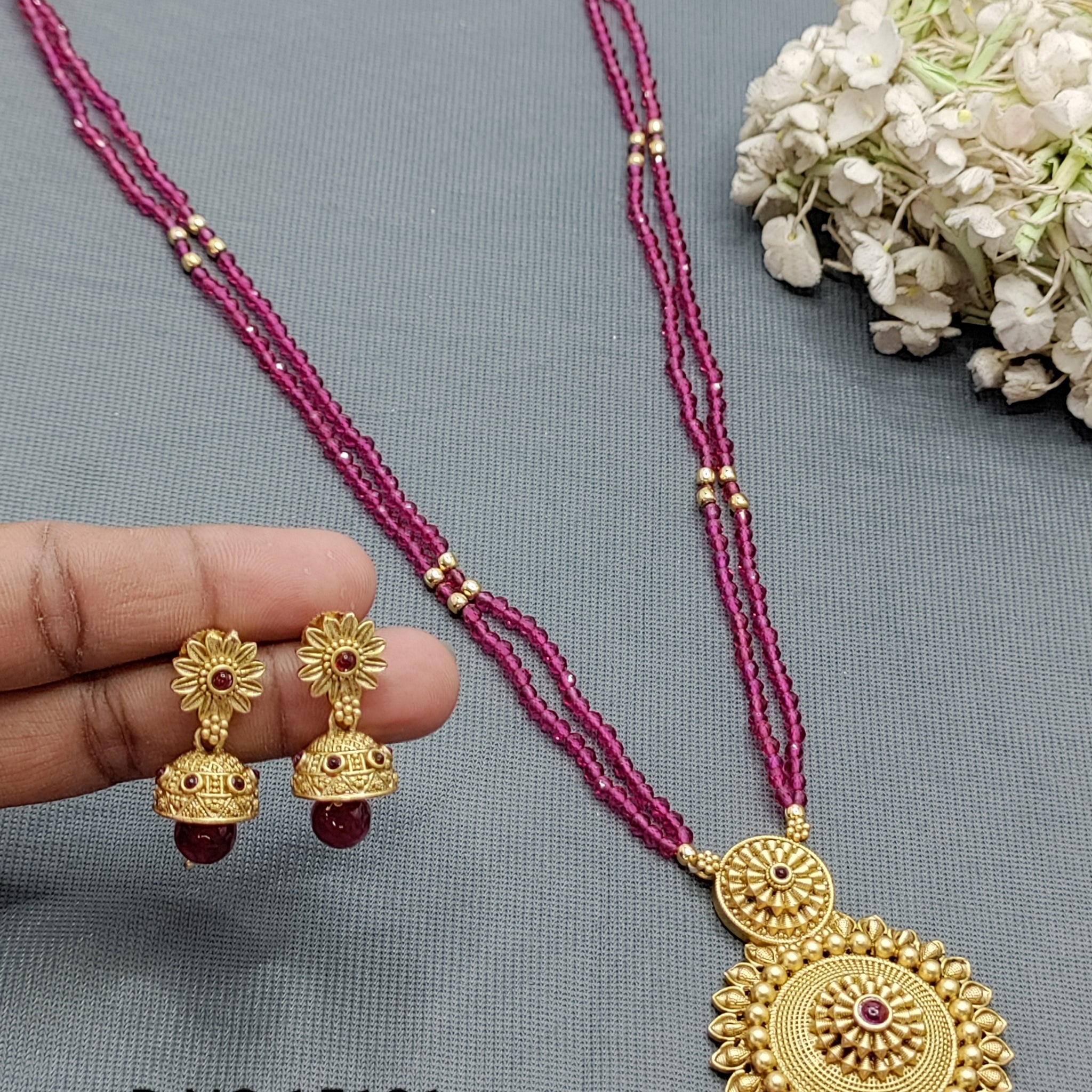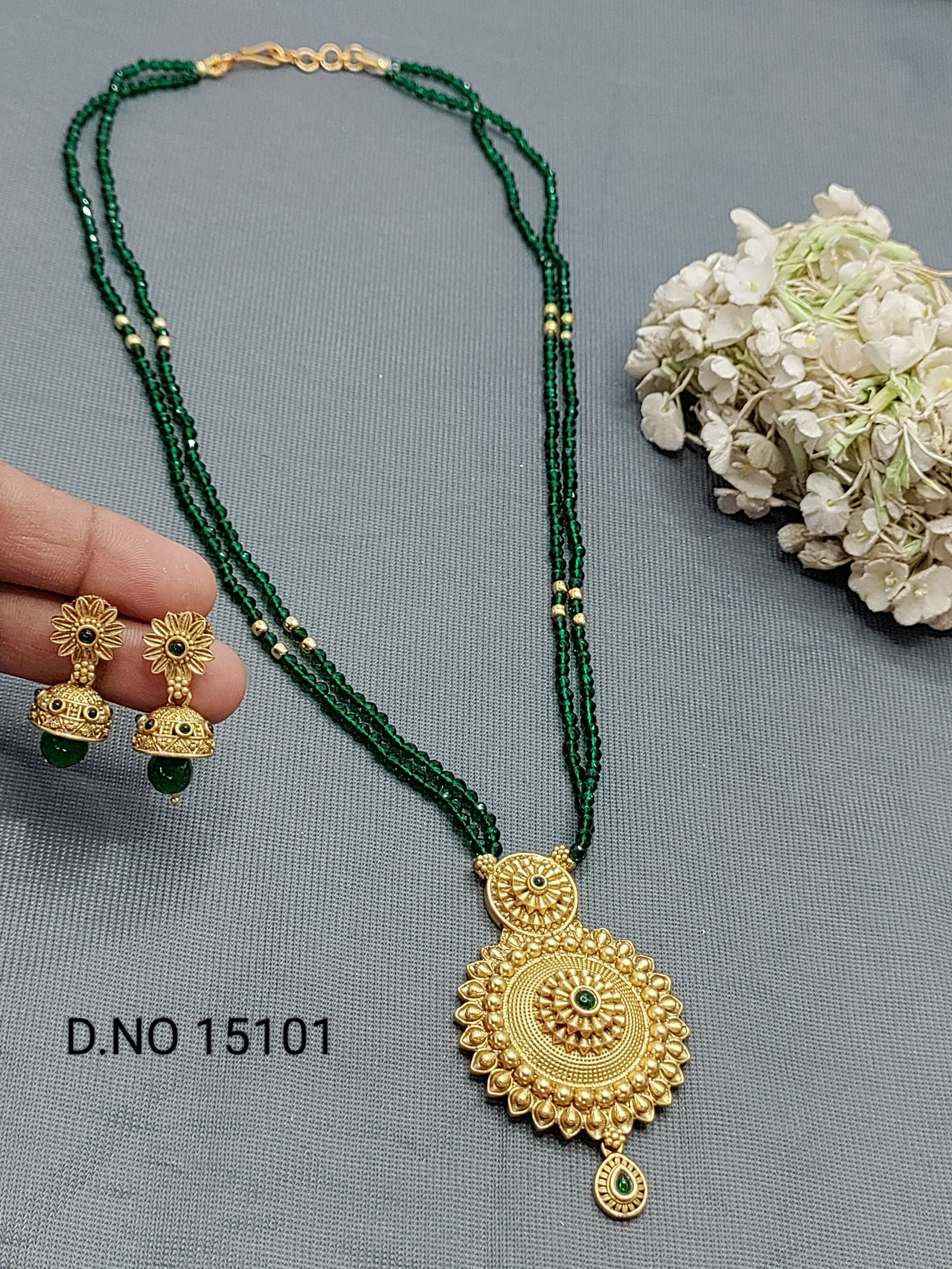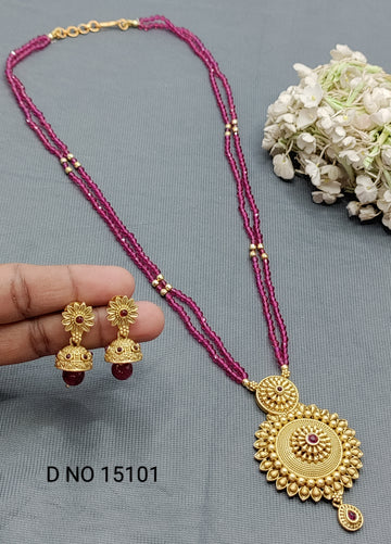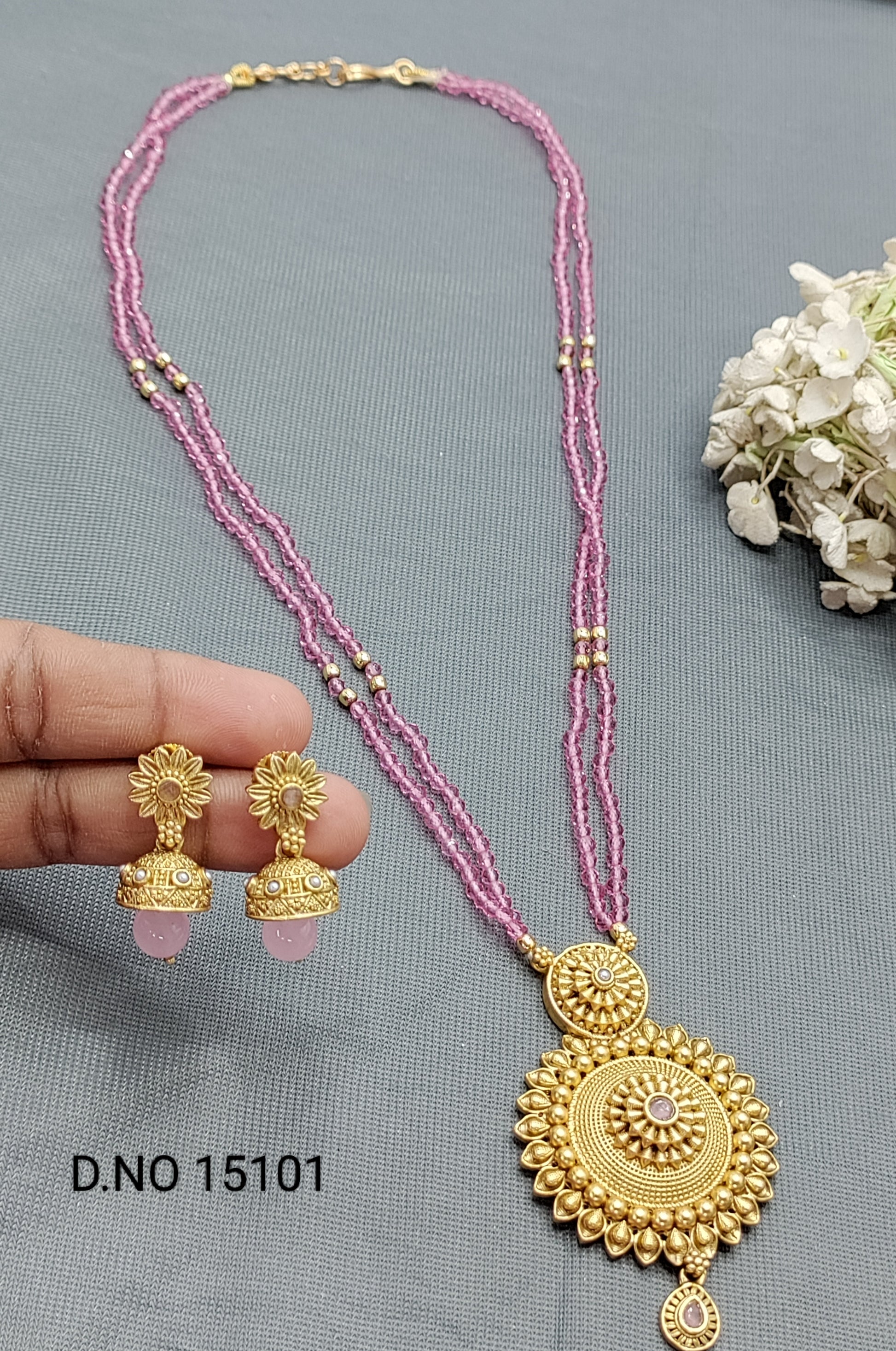 Antique Golden Mala Necklace. Crafted with intricate detail, this necklace exudes elegance and adds a touch of sophistication to any outfit. The vintage design and golden tones make it a versatile piece, perfect for any occasion. Elevate your style with this stunning necklace.