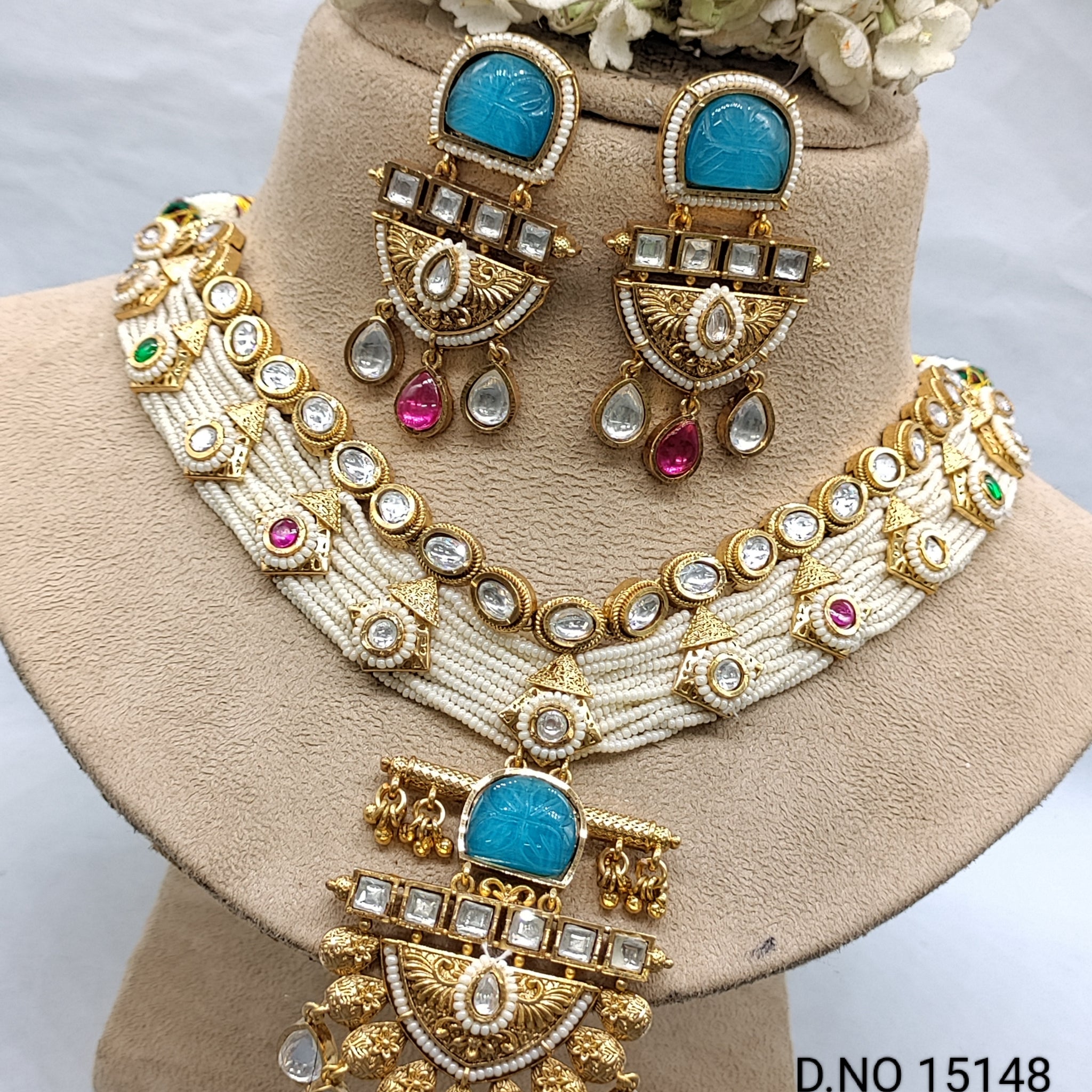 This Antique Golden Necklace Set brings a touch of elegance with its antique golden finish. Crafted with exquisite details, this necklace set is a timeless piece to add to any collection. Made from high-quality materials, it offers lasting durability and a beautiful addition to any outfit.
