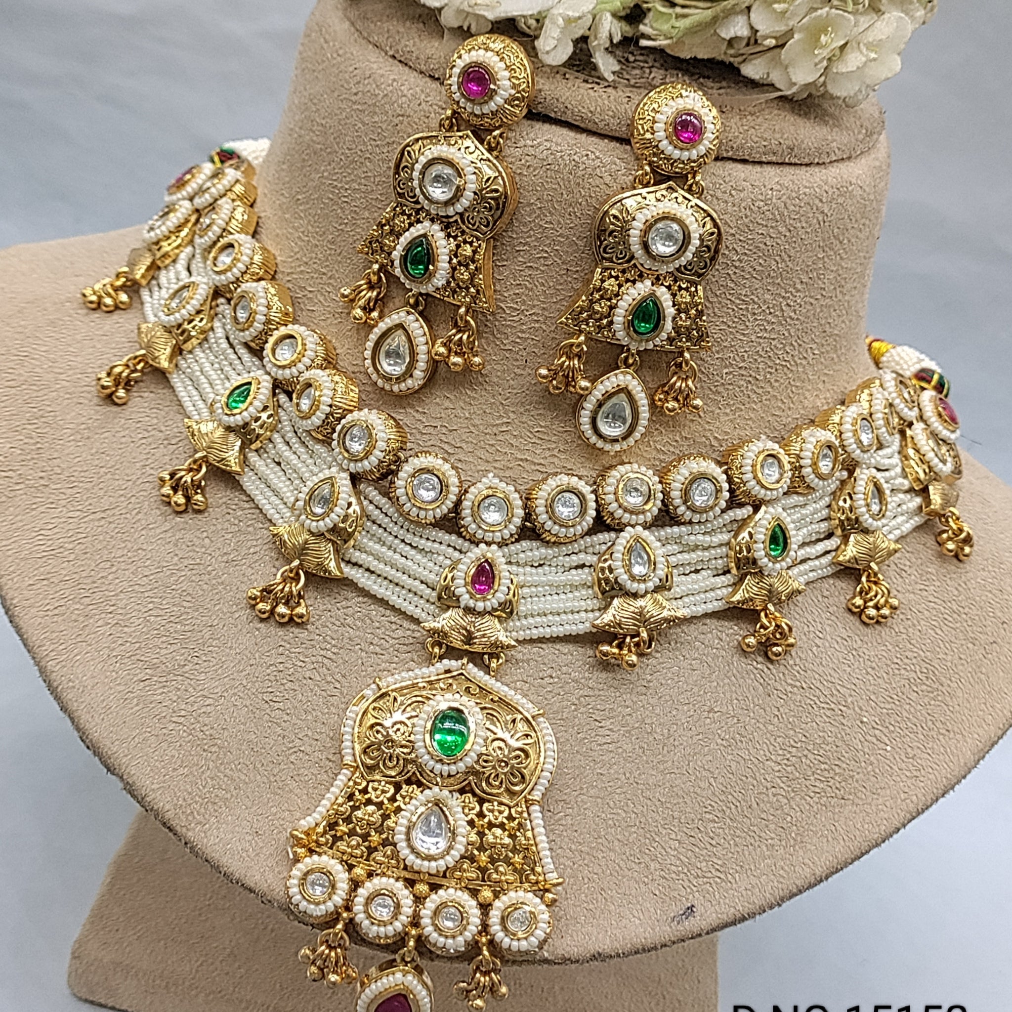 This antique golden necklace exudes elegance and sophistication with its intricate design and rich color. Crafted with precision, this necklace set is a timeless addition to your jewelry collection. Made of high-quality materials, it promises both durability and style, making it the perfect accessory for any occasion.