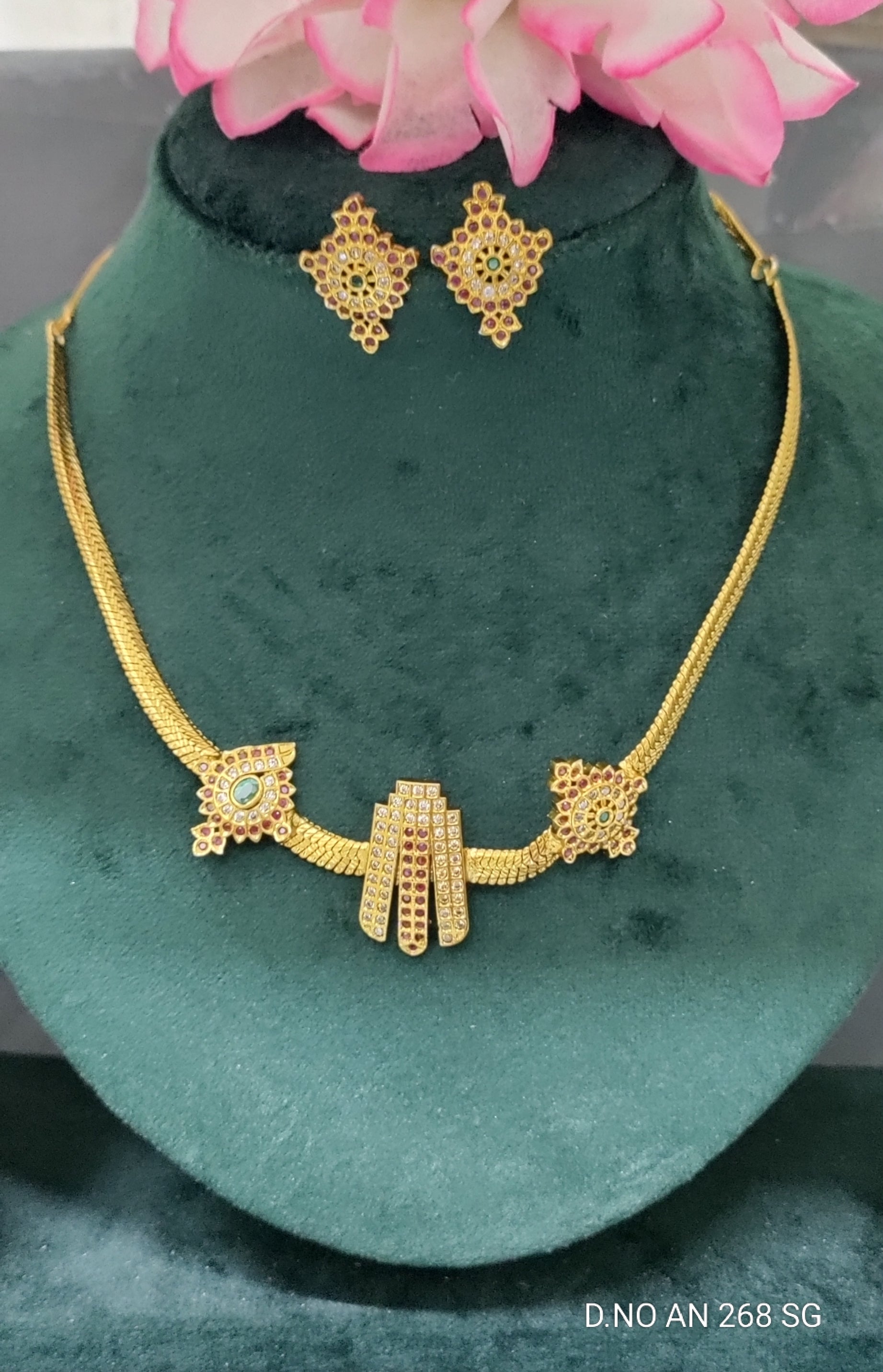 As a stunning addition to any jewelry collection, our Antique Golden Necklace (sku AN 268 SG) exudes elegance and sophistication. The intricate design and rich gold color make for a timeless piece, perfect for any formal occasion. Made with high-quality materials, this necklace will surely become a treasured possession.