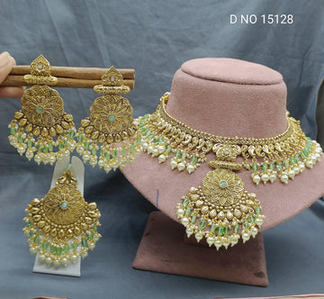 Antique Golden Panjabi Necklace Set Sku 15128 E4