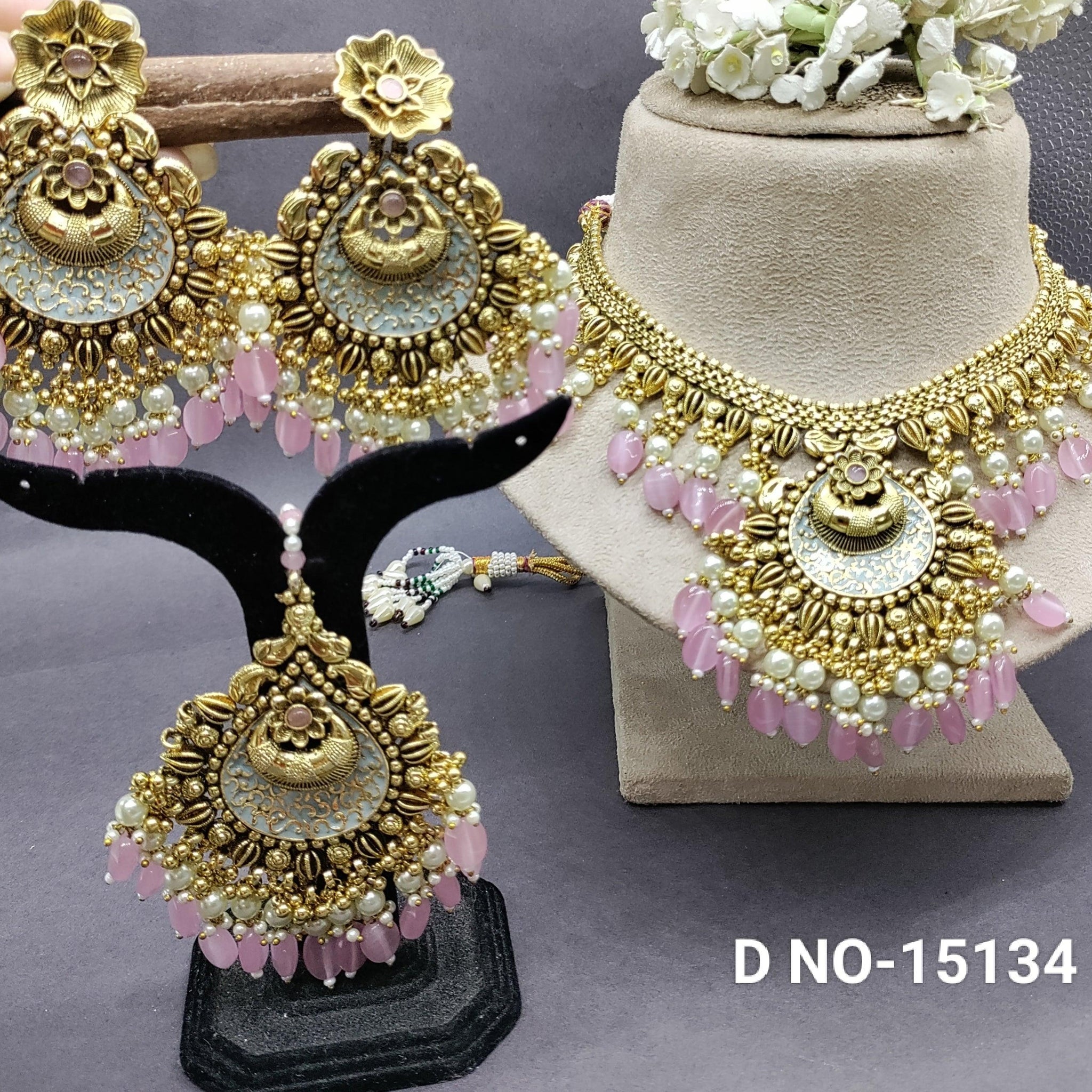 Antique Golden Panjabi Necklace Set Sku 15134 E4