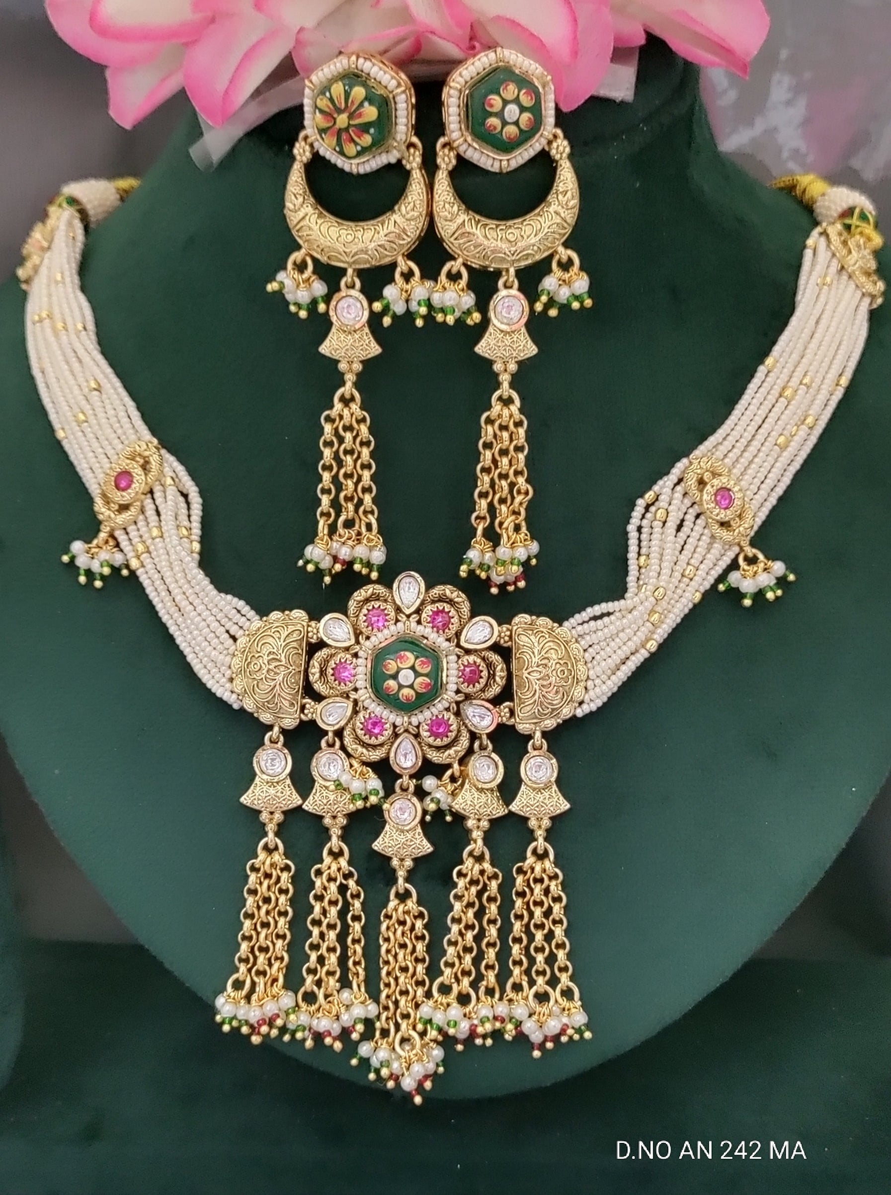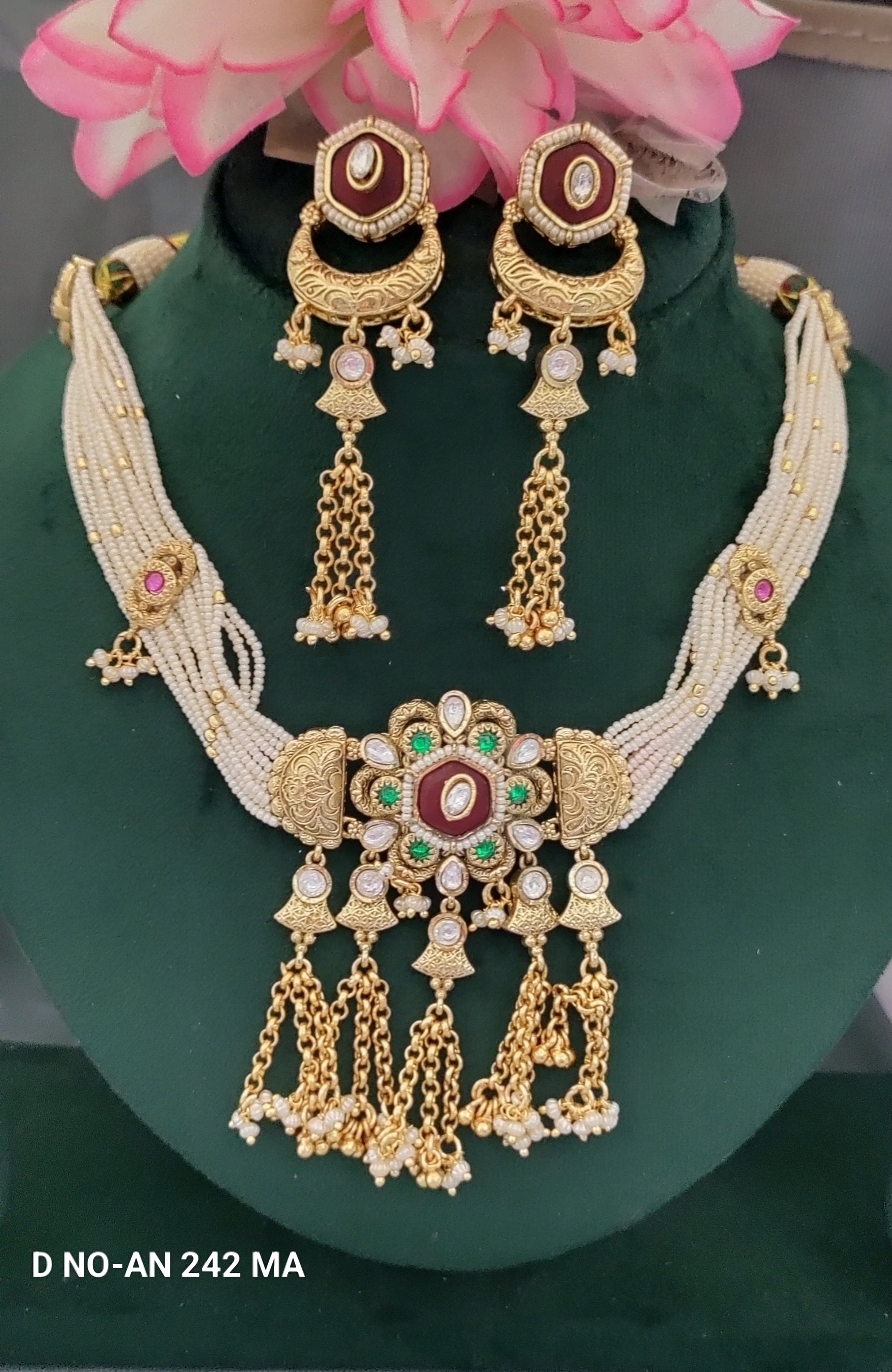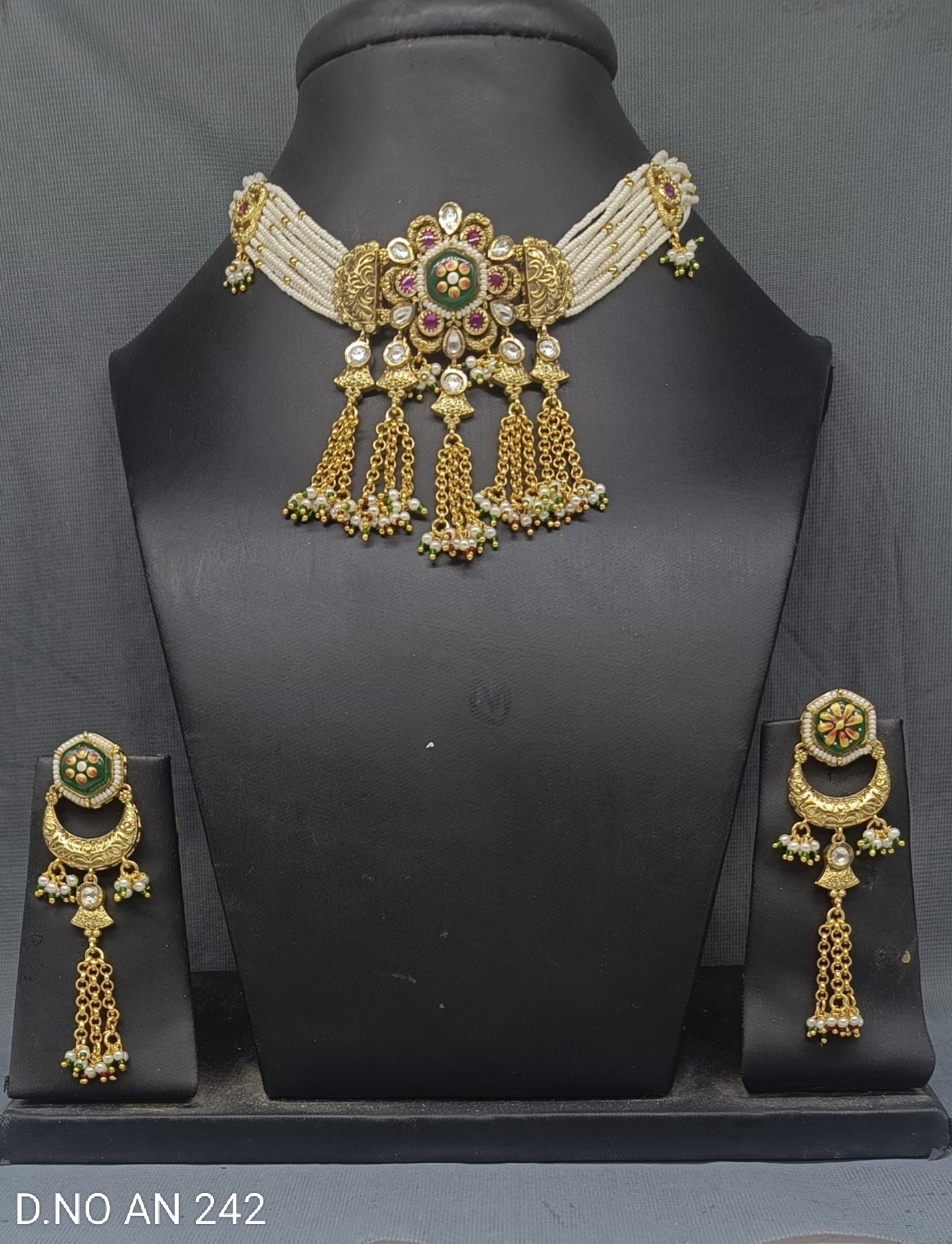 Antique Golden Pearl Kundan choker Set SKU AN 242 MA/D-4