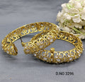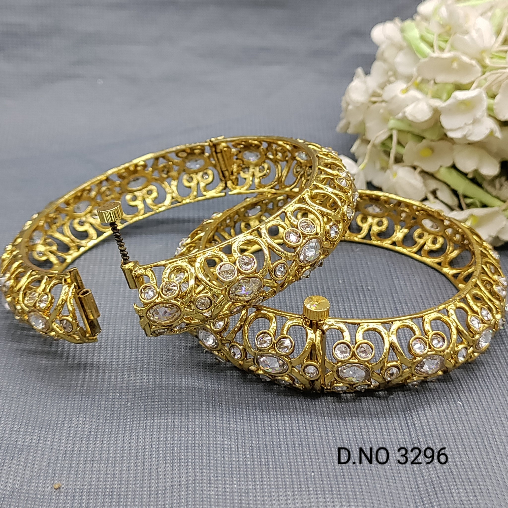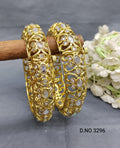 Expertly crafted with antique golden polki, these bangles add a touch of elegance and tradition to any outfit. Made with high-quality materials, they are durable and eye-catching. Enhance your style and make a statement with these timeless bangles.