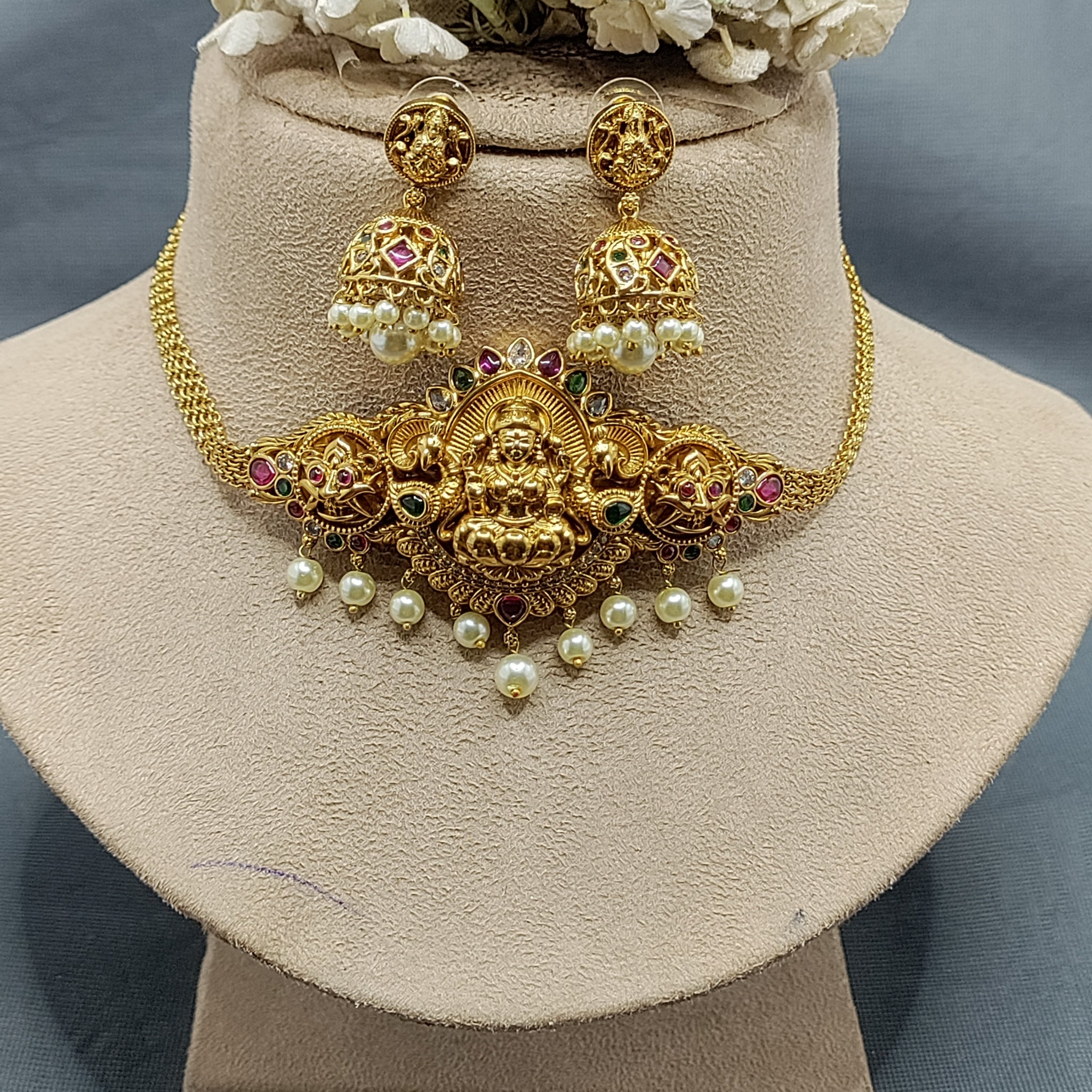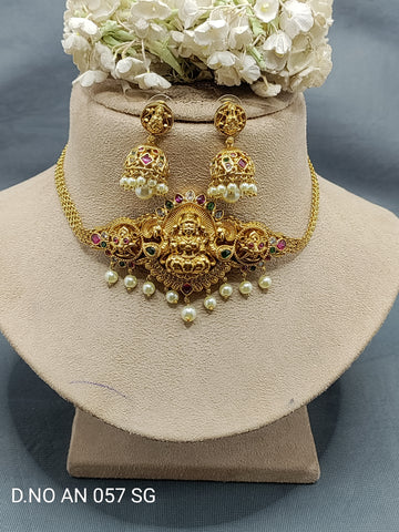 Antique Golden Temple Chokar Necklace Set Sku AN 057 SG D5