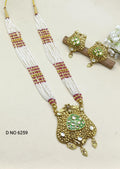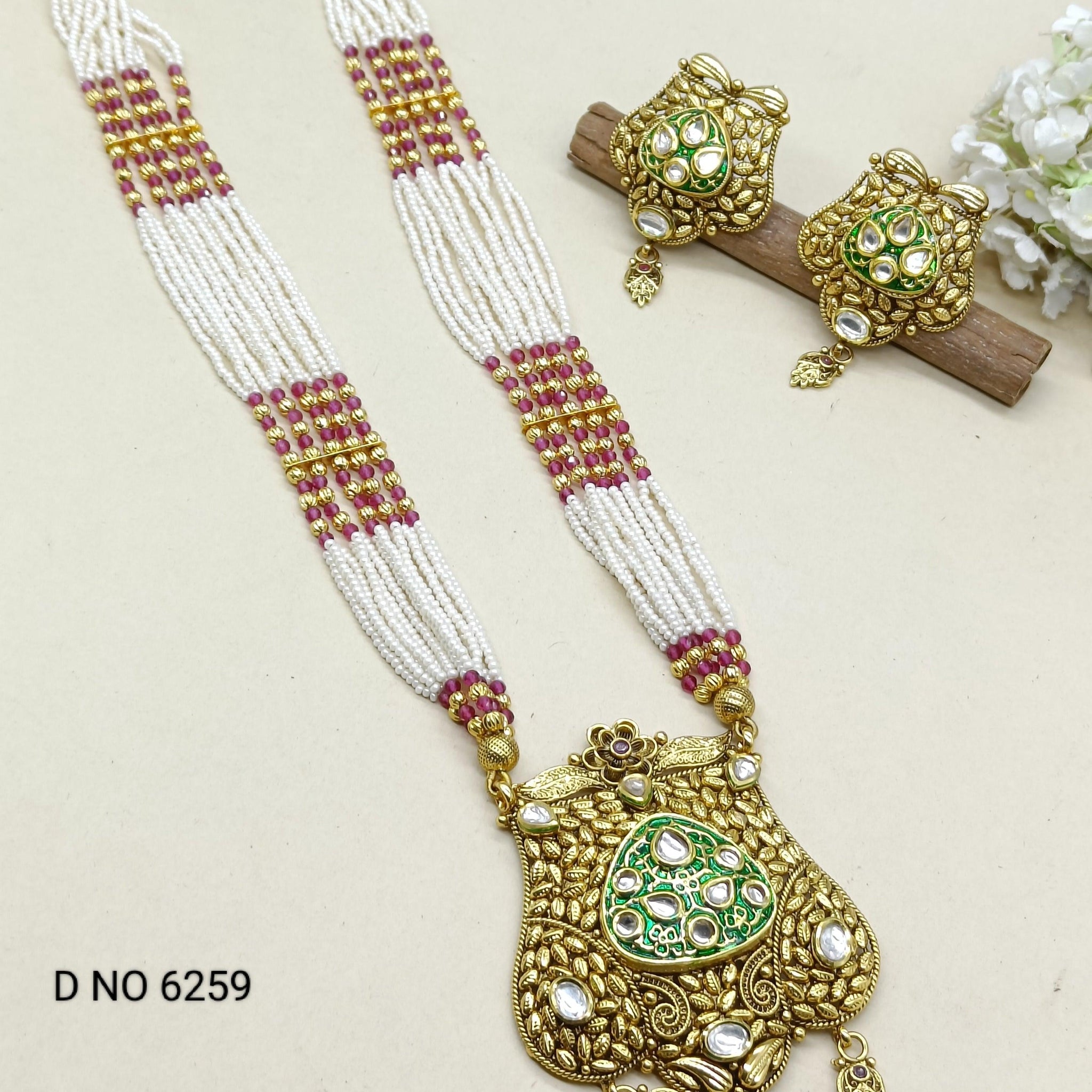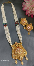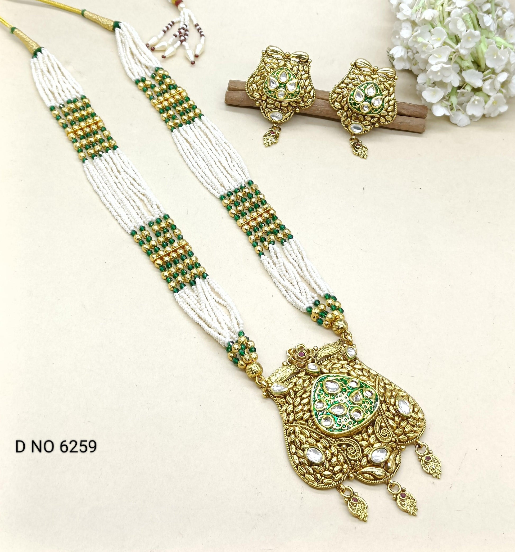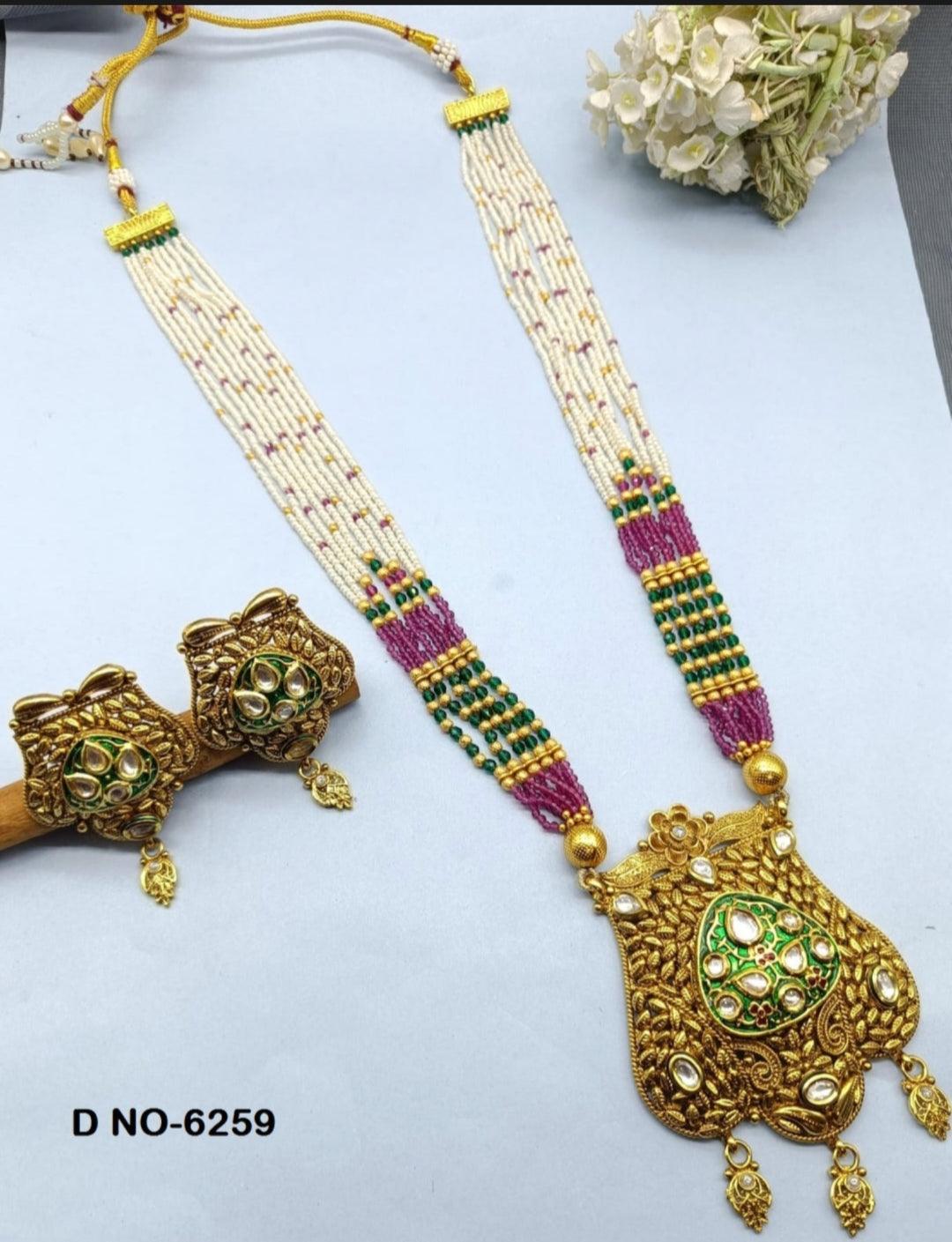 kundan necklace with earrings . pearl bead work. Thread gonda in necklace and Push back in Earings and very light weight.