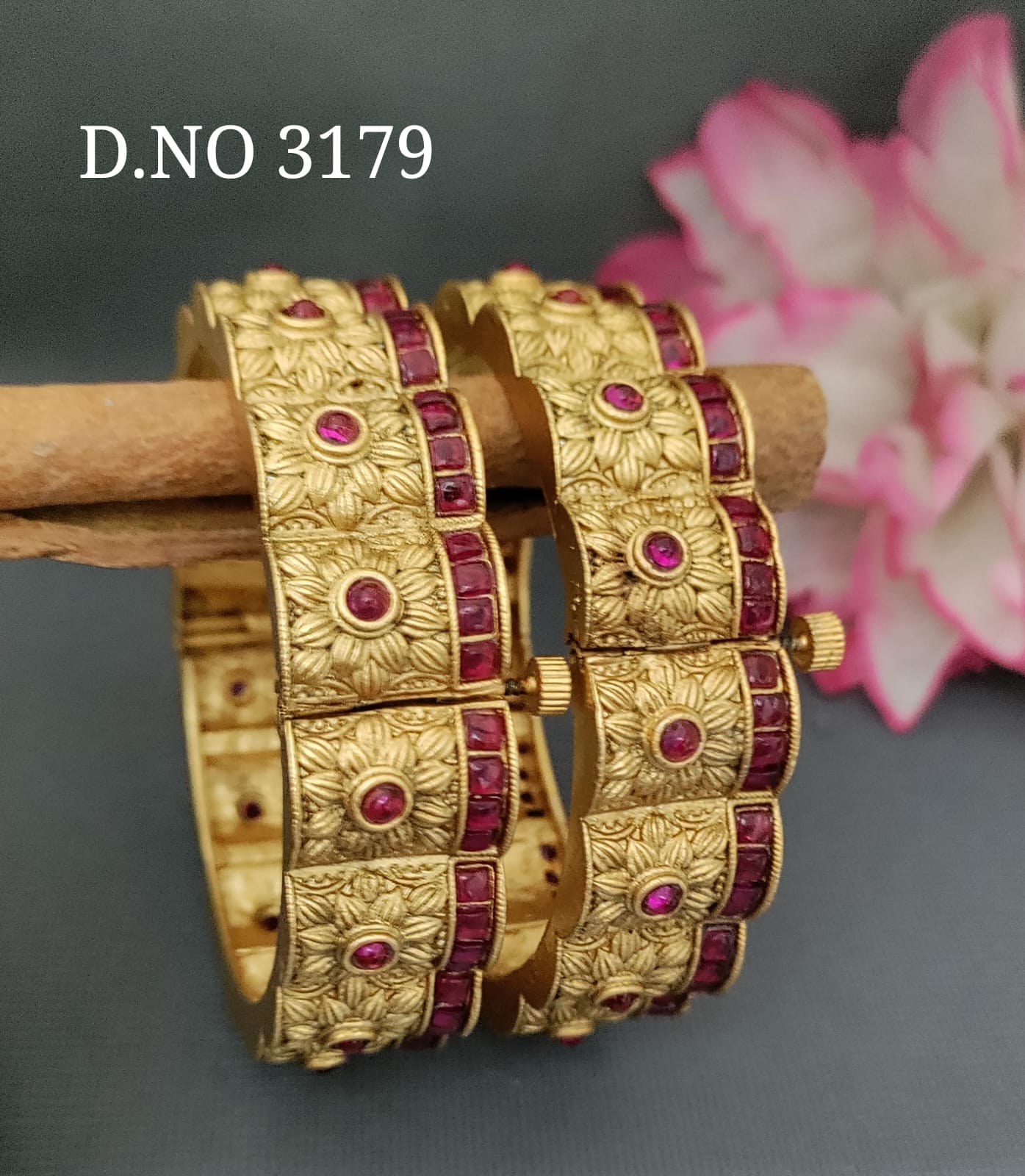 Antique Openable Bangles Sku 3179 showcase expert craftsmanship with a design that combines vintage aesthetics and modern functionality. These bangles feature a reliable openable clasp, allowing for effortless wear and removal while preserving their intricate antique detailing. Ideal for those who value both elegance and convenience in timeless jewelry pieces.