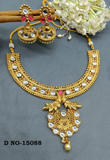 Ruby Necklace with Antique finished is just like normal jewelry, but the designs are more traditional and depict ancient culture. They are usually heavy jewelry pieces with a dark brownish or dull finish. Organic black polish layer is applied to these jewelry pieces to give it an antique look after the item is made Of Brass,copper or alloy
