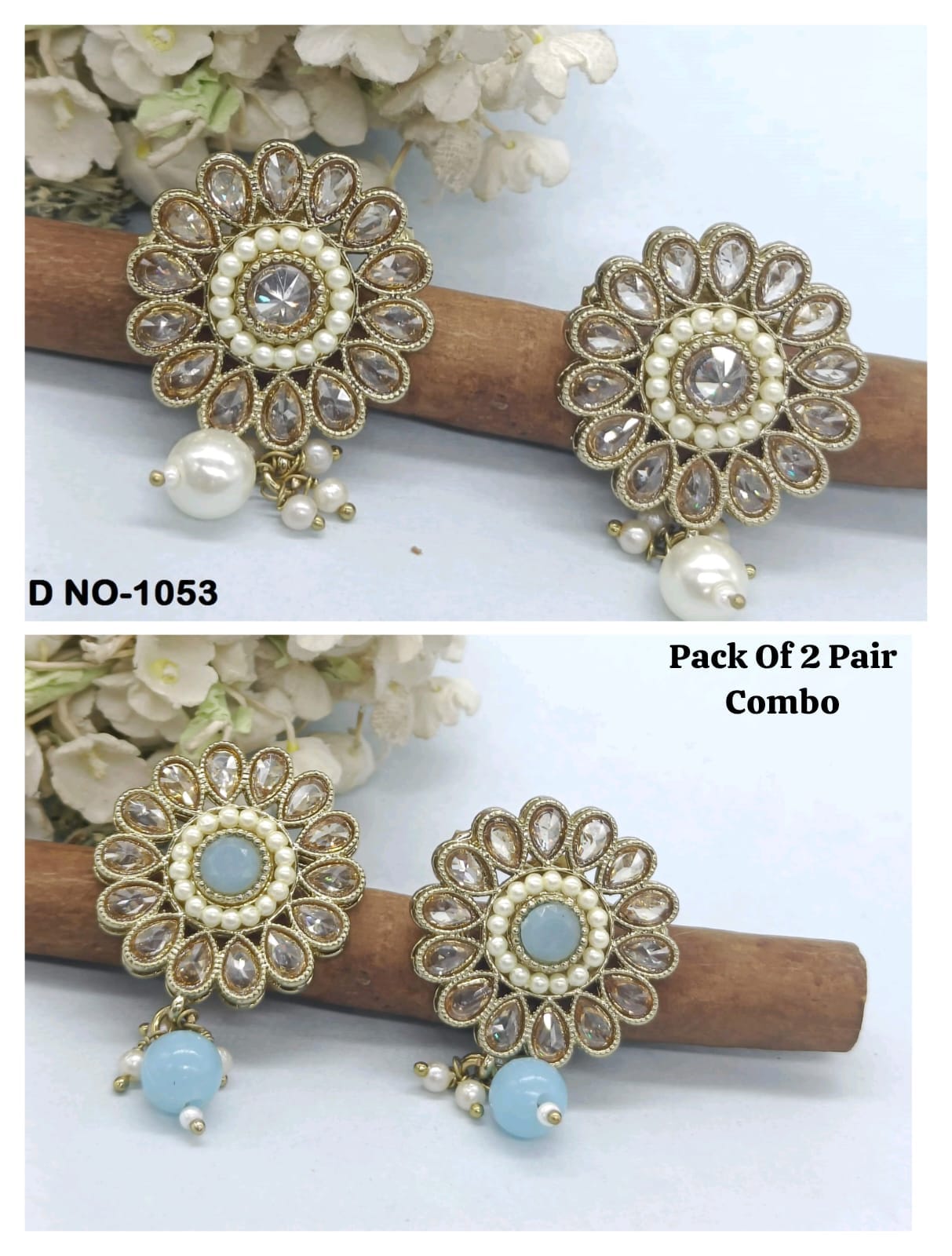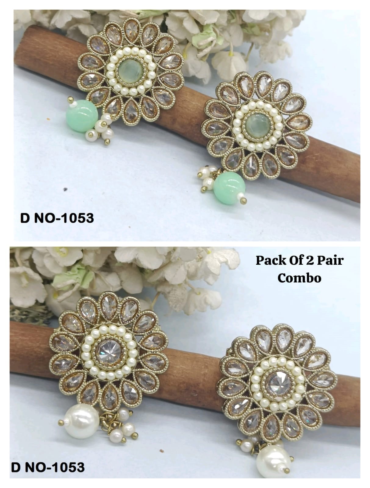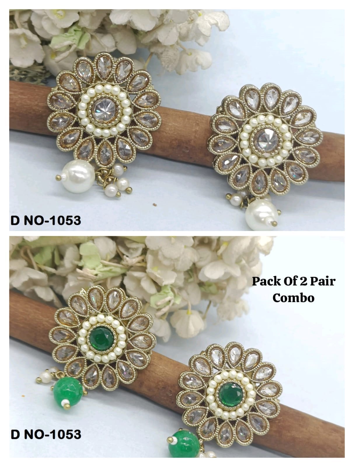 Mehandi polished Tops & Stud Earrings made with uncut polki stone. crafted with unique pearl work and latakan. these earrings are a unique addition to any jewelry collection.