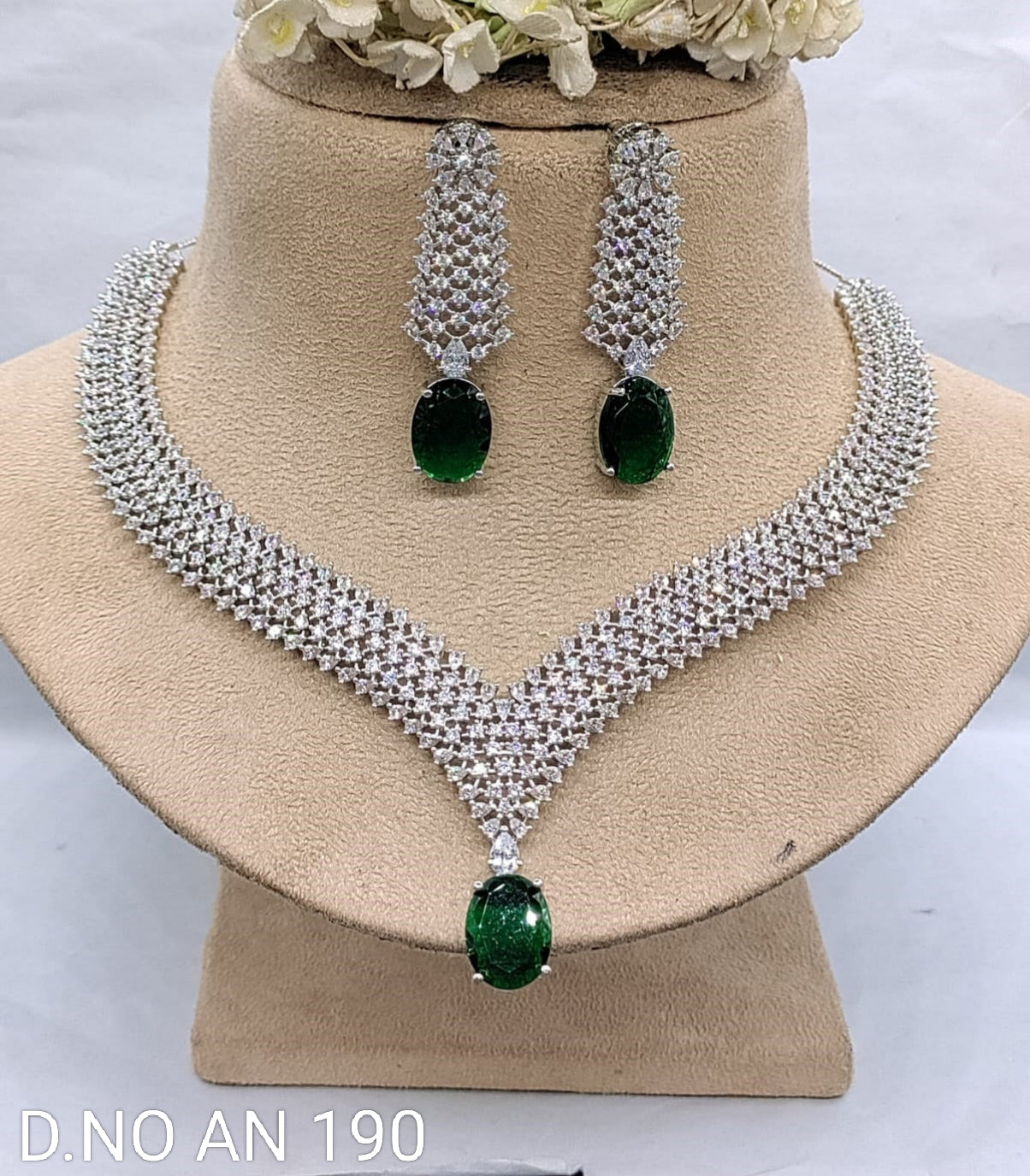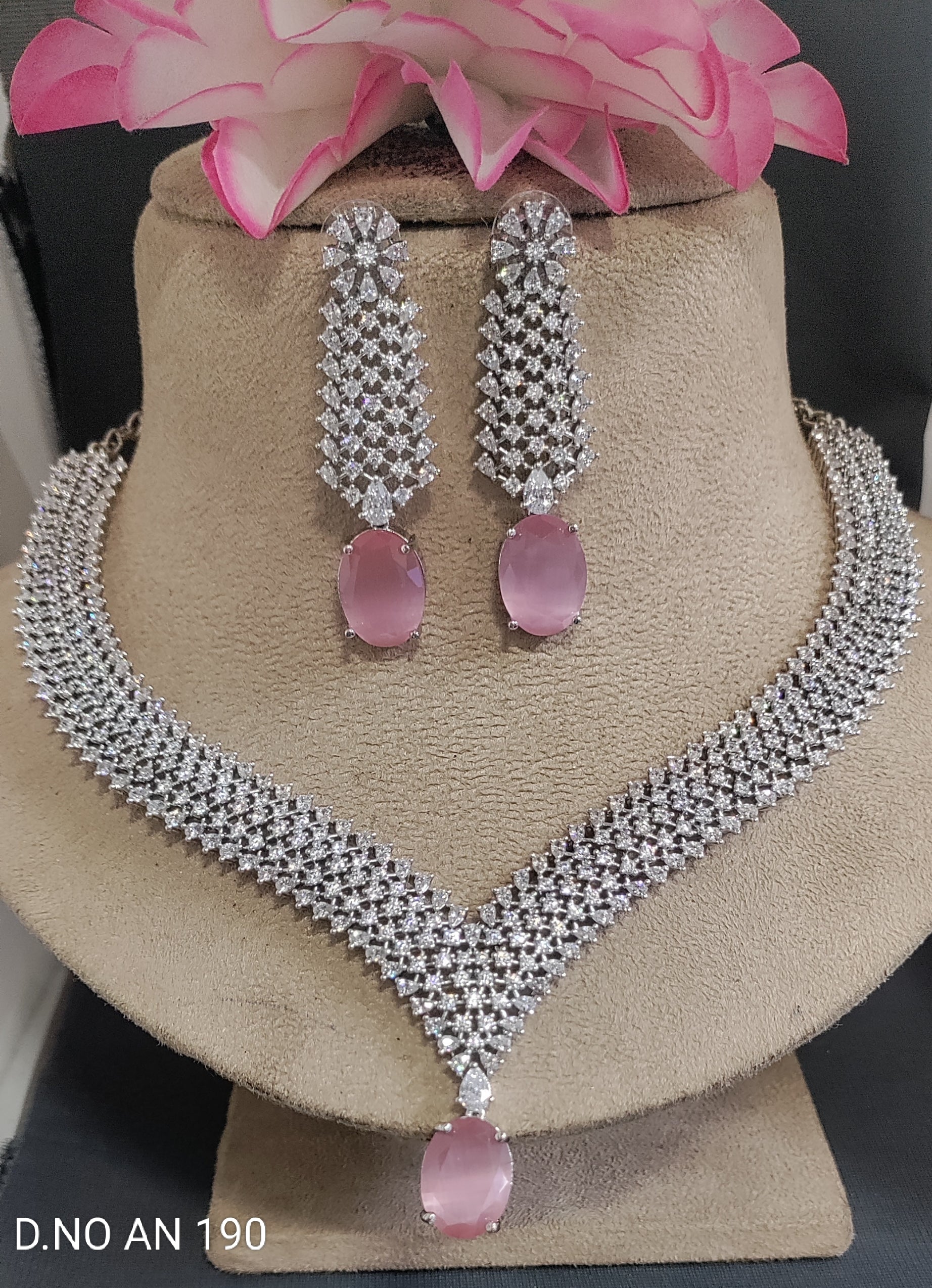 This Celebrity Rodium American Diamond Necklace SKU-AN 190 offers a glamorous and sophisticated look with its stunningly crafted ad set design. Made with high-quality materials, this necklace exudes elegance and luxury. Add it to your collection for a touch of celebrity style.