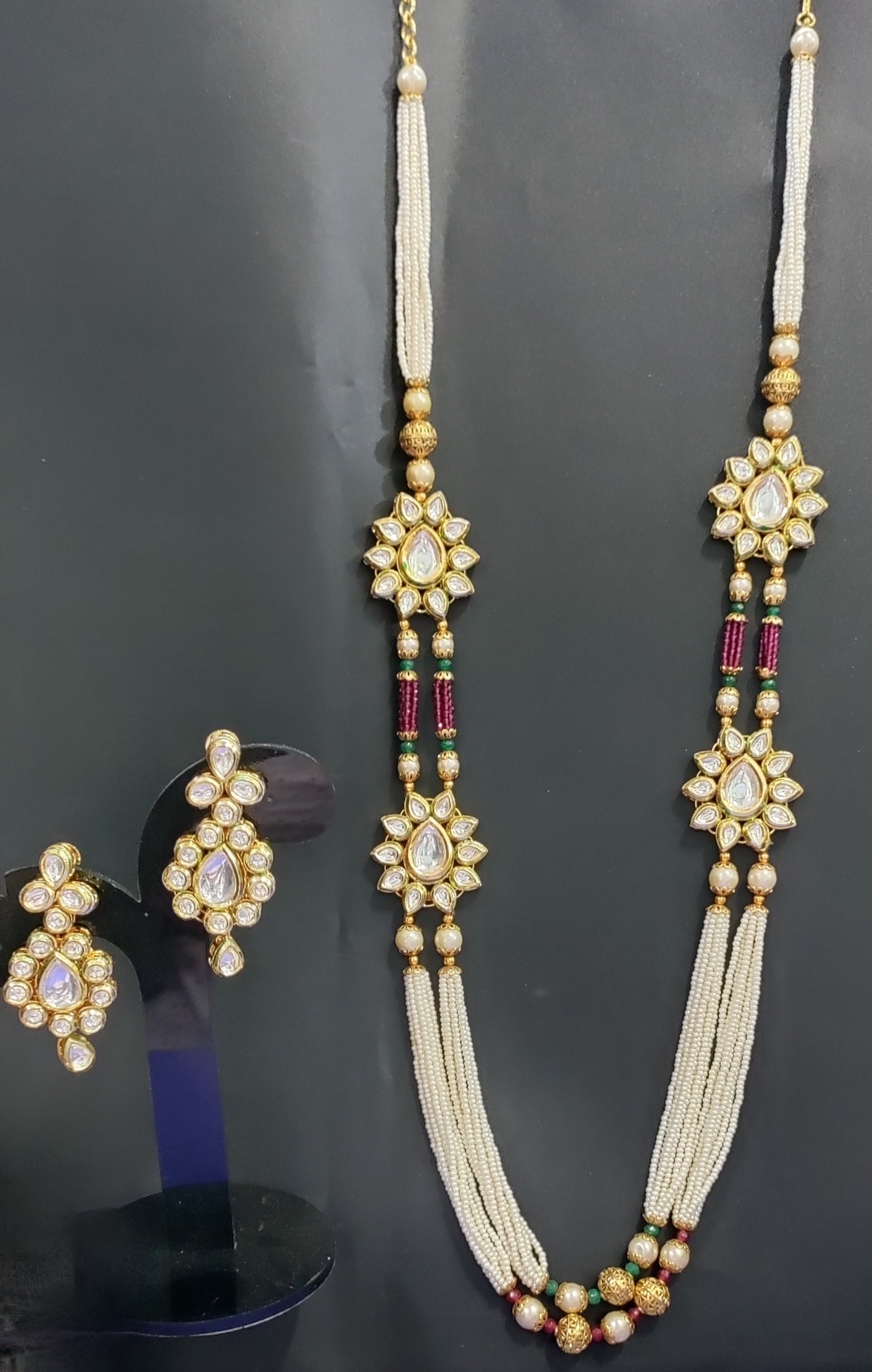 Golden Kundan Long Pearl Necklace SKU-531 D-4