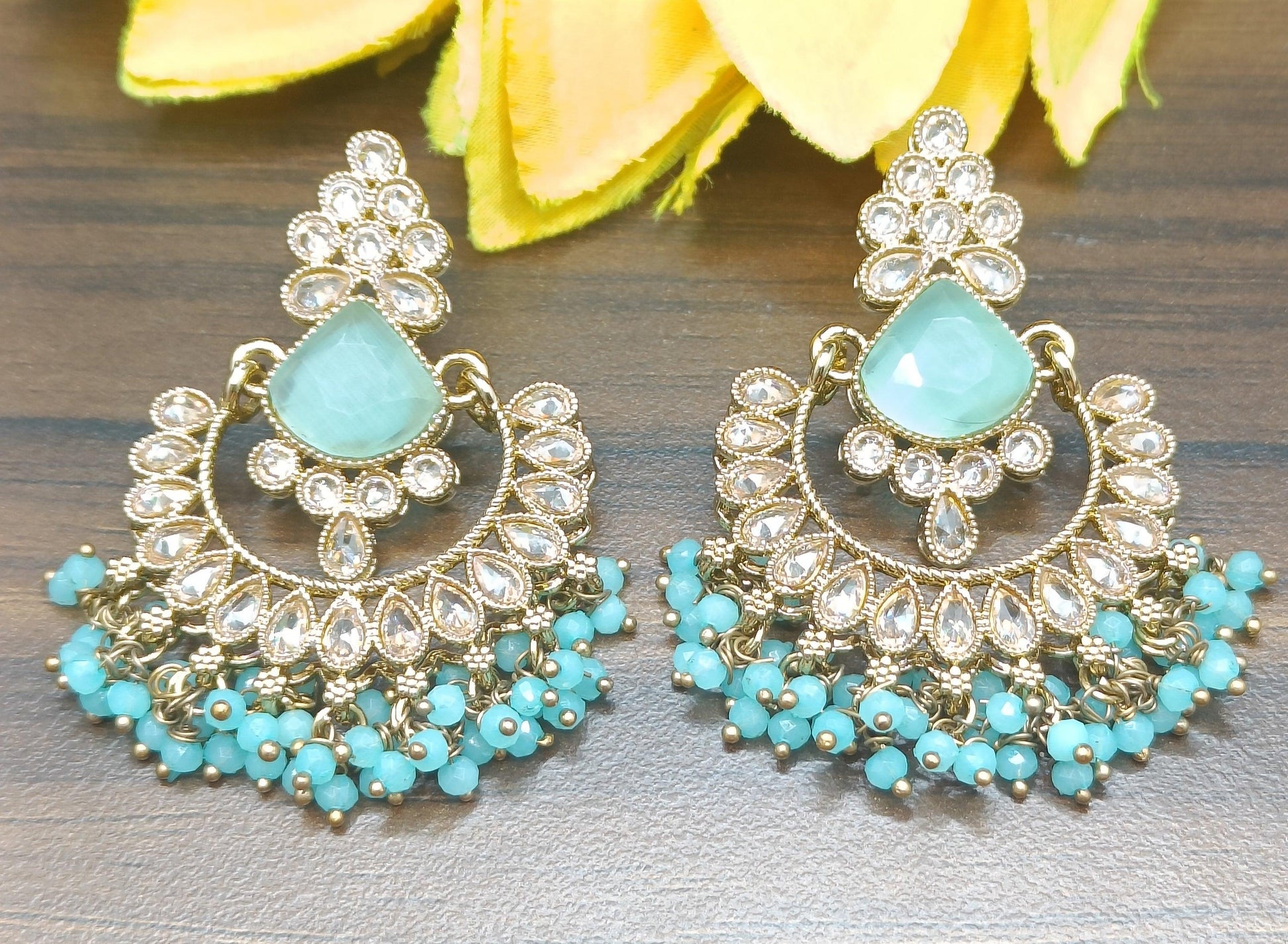 Beautiful Polki jewellery in golden Mahendi finish with Polki Kundan with beads stones to make these exquisite Earring really special – light in weight & can be paired with almost any outfit perfect accessory for every occasions party & wedding.