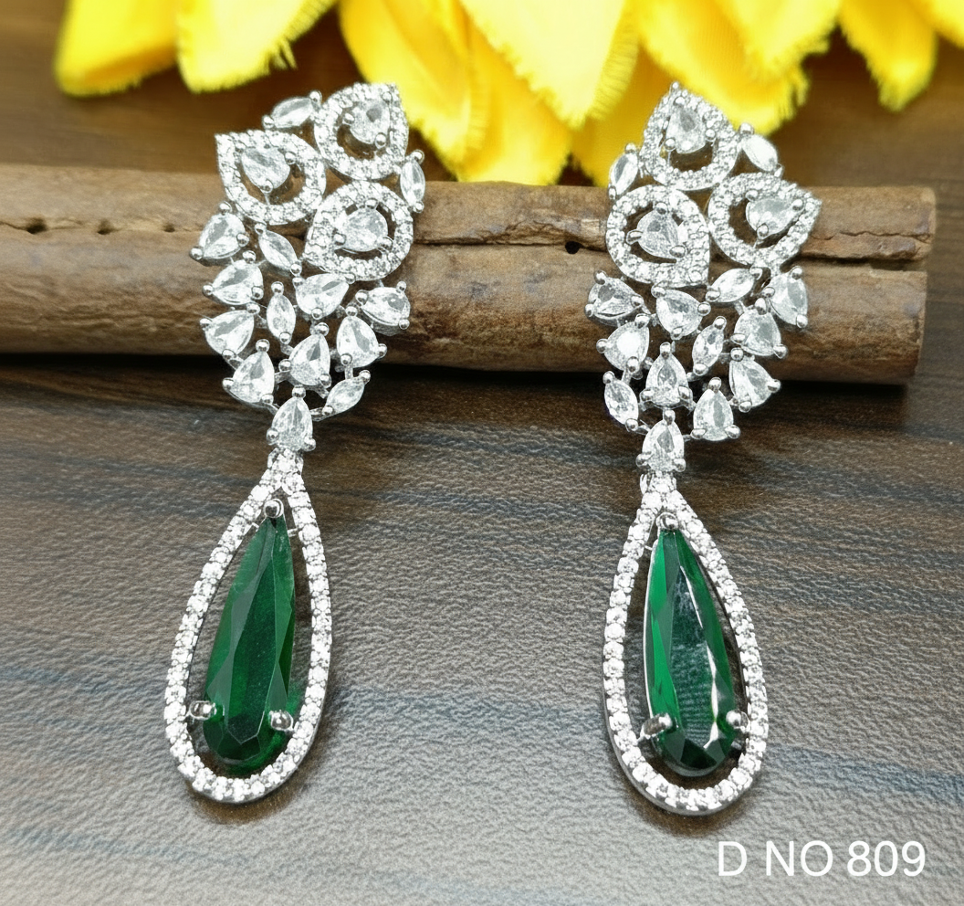 American Diamond Rodium Earrings Sku-809 C1