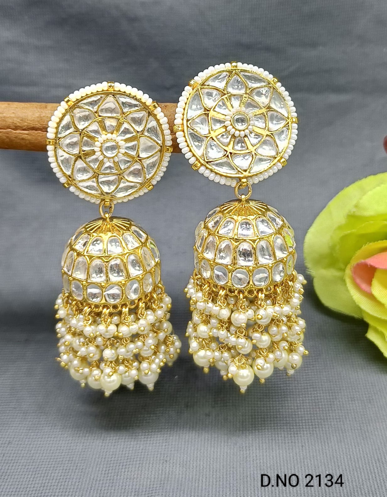 We use real pachi stones to increase beauty of products,to give real look.,Pachi kundan jhumki earrings . pearl bead work. and Push back in Earings and very light weight.