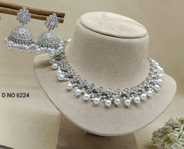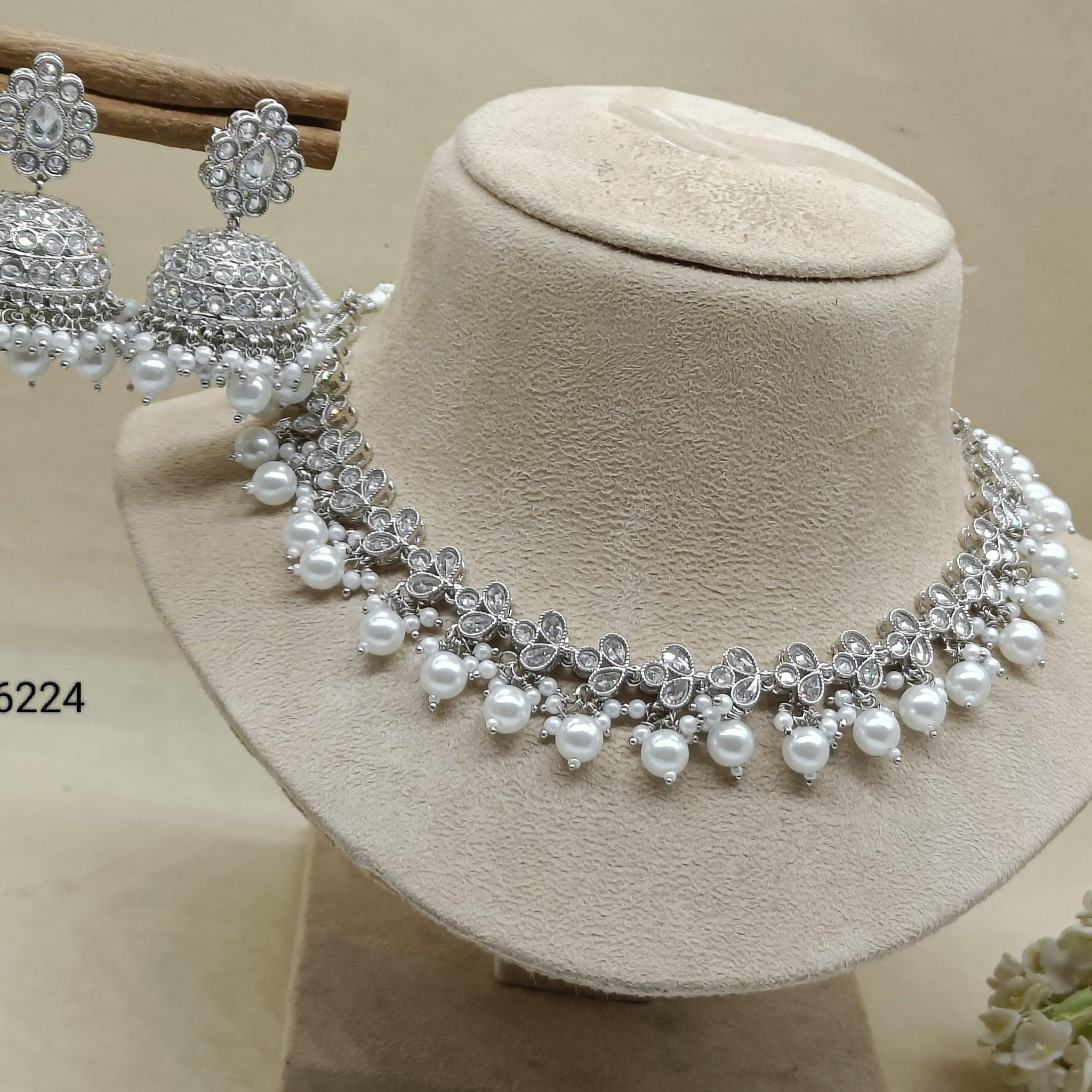 Polki Rodium Necklace Set (Sku 6224 B5) exudes a timeless charm. The intricate design, paired with the polished rhodium finish, adds a touch of sophistication to any outfit. Elevate your style with this stunning accessory.