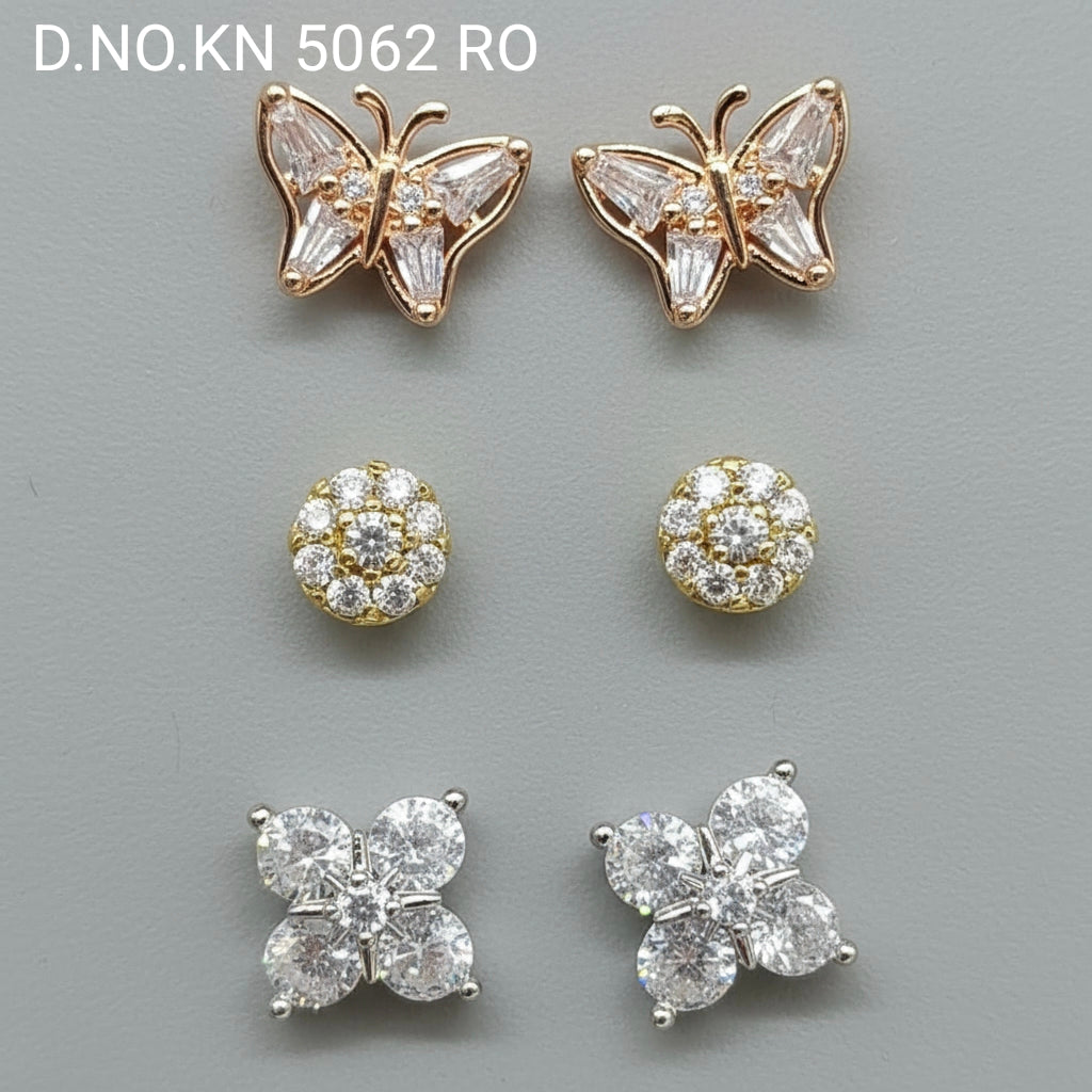 Cz Ad 3 Piece Tops & Stud Earring Sku KN 5062 RO/C-1