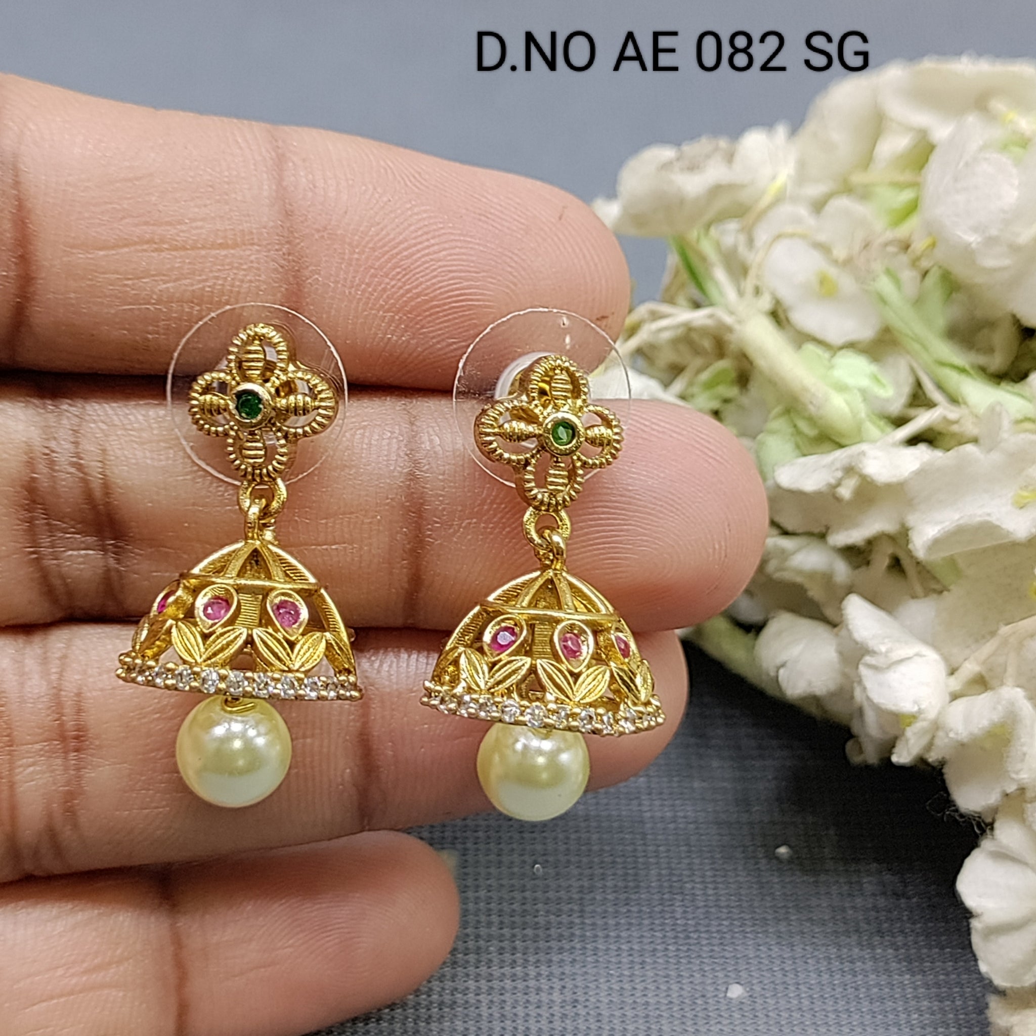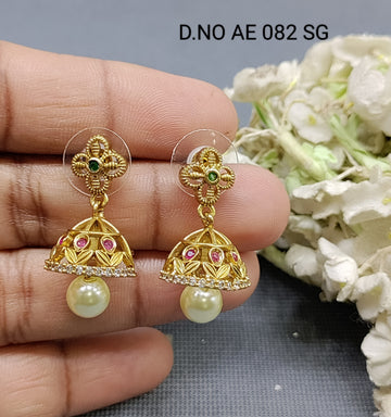 Cz Ad Antique Golden Jhumki Earring Sku AE 082 SG D/3