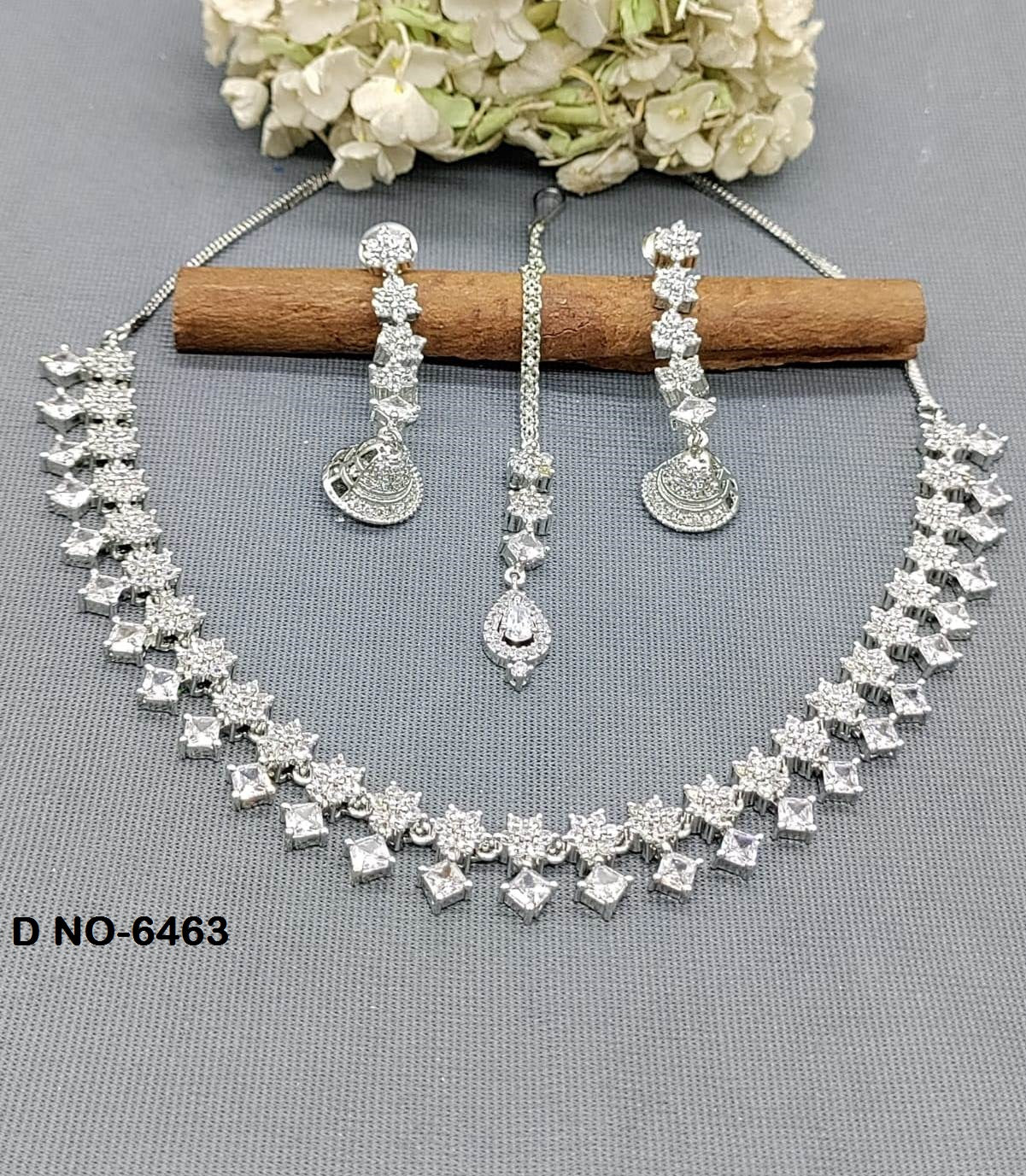CZ Ad Diamond Rodium Necklace SKU-6463 C3
