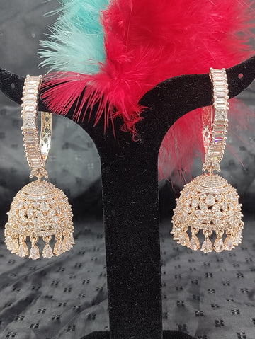 Cz Ad Earrings Jhumki Rosegold Sku-640 C1