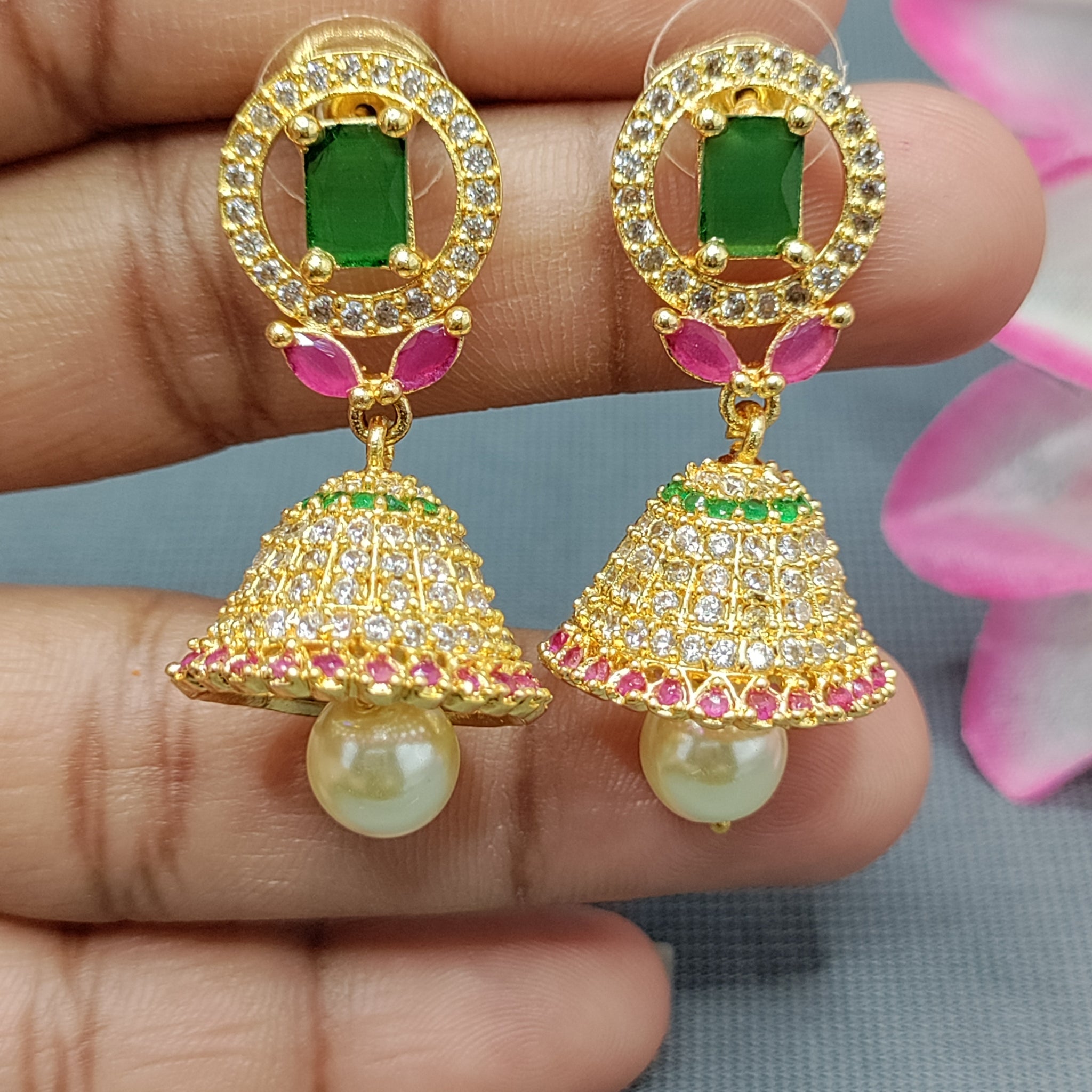 Cz Ad Golden Jhumki Earring Sku AE 053 SG C2