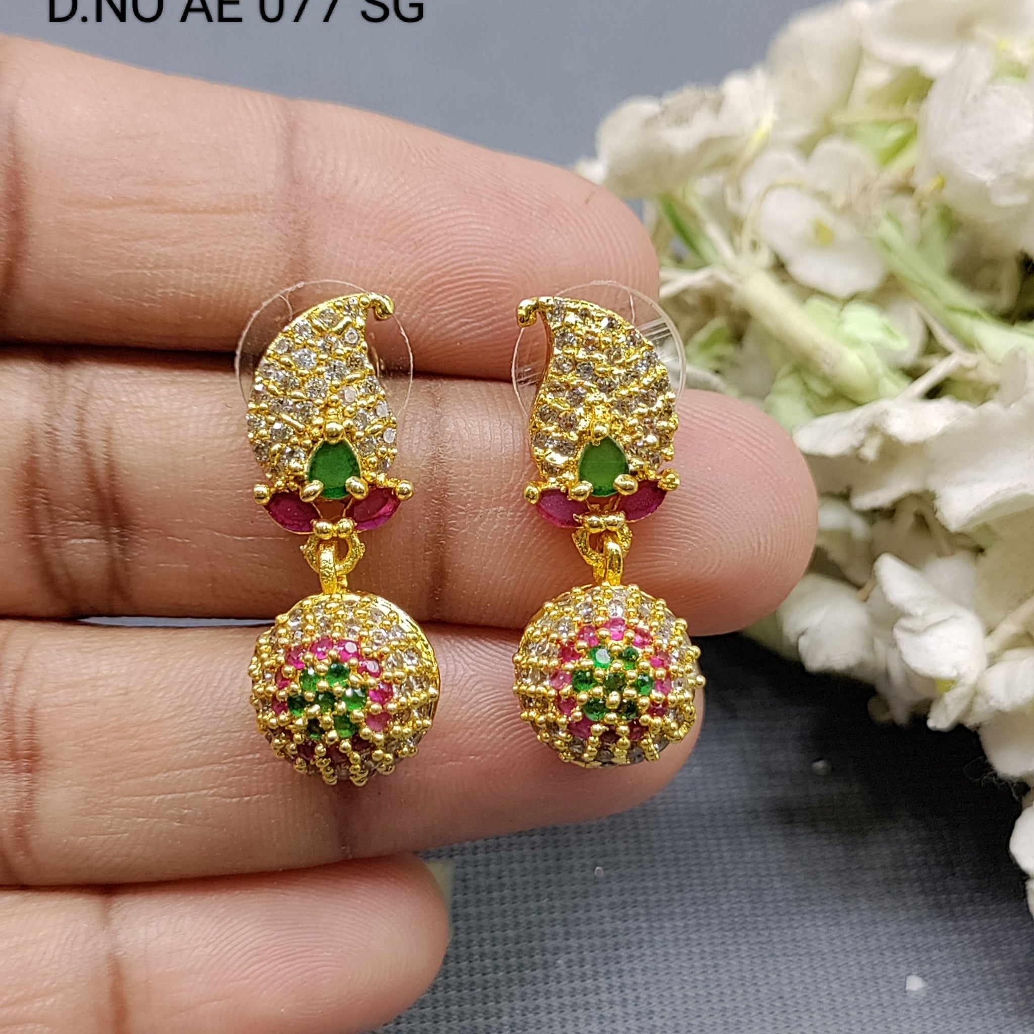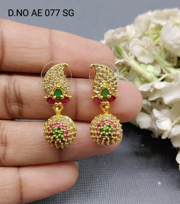 Cz Ad Golden Jhumki Tops & Stud Earrings Sku AE 077 SG C/2