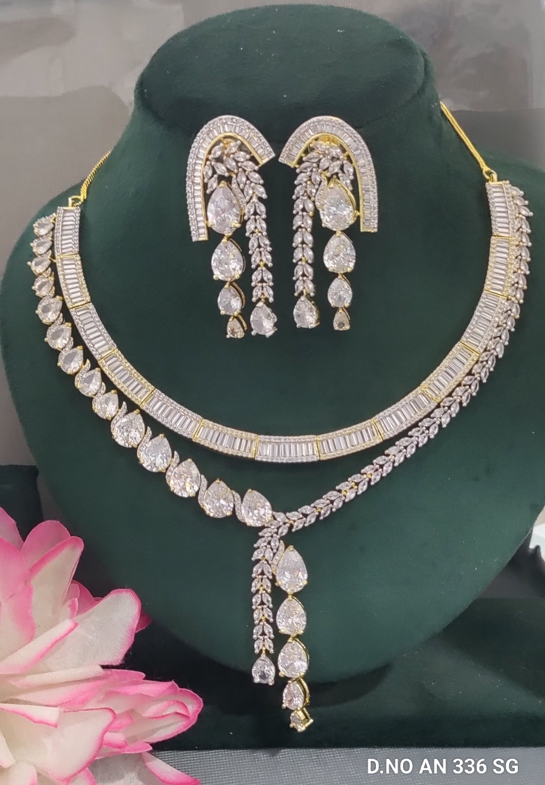 Cz AD Golden Two Tone Necklace SKU AN 336 SG/C-3