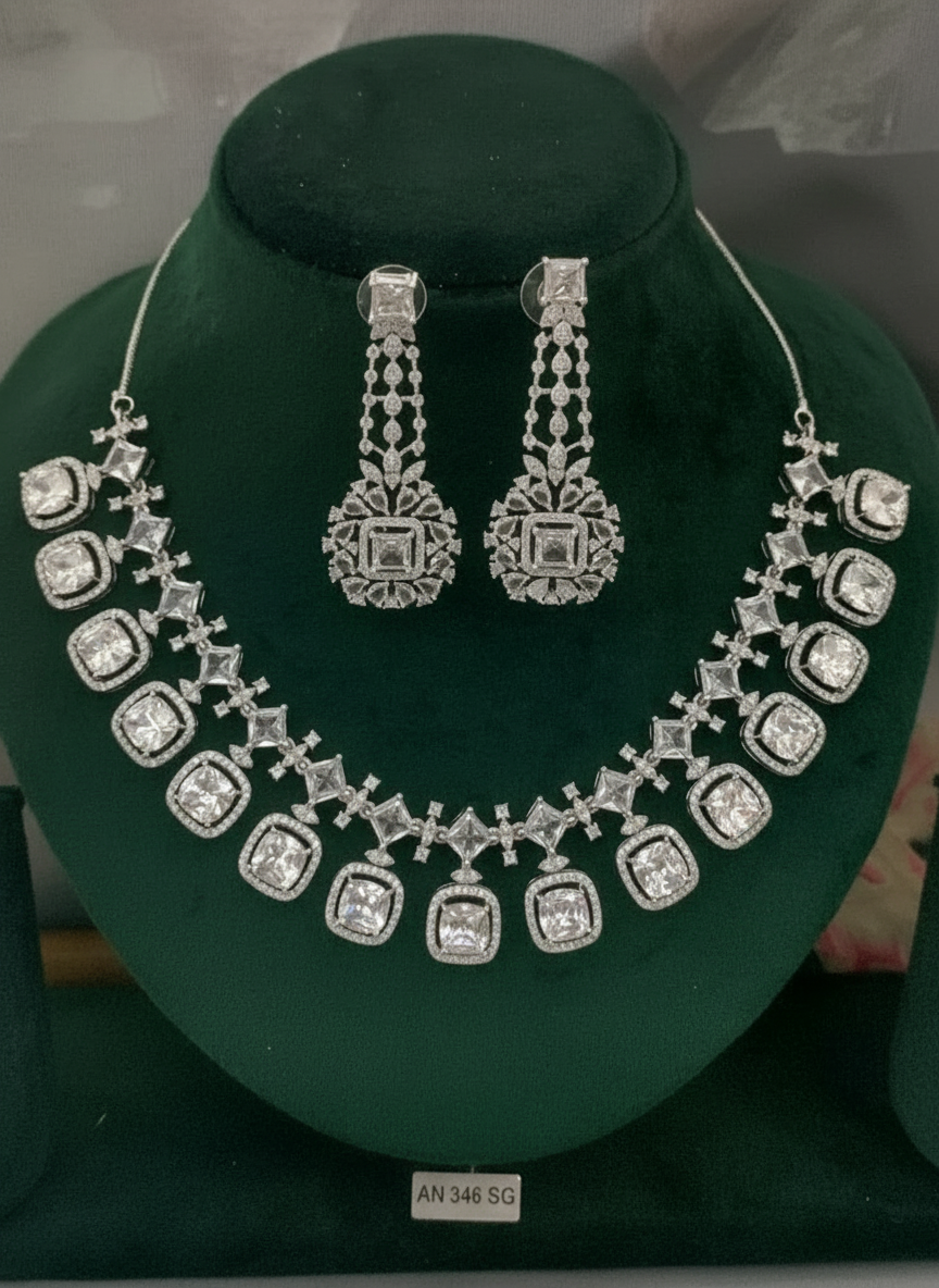 CZ AD Rodium Necklace SKU AN 346 SG/C-7
